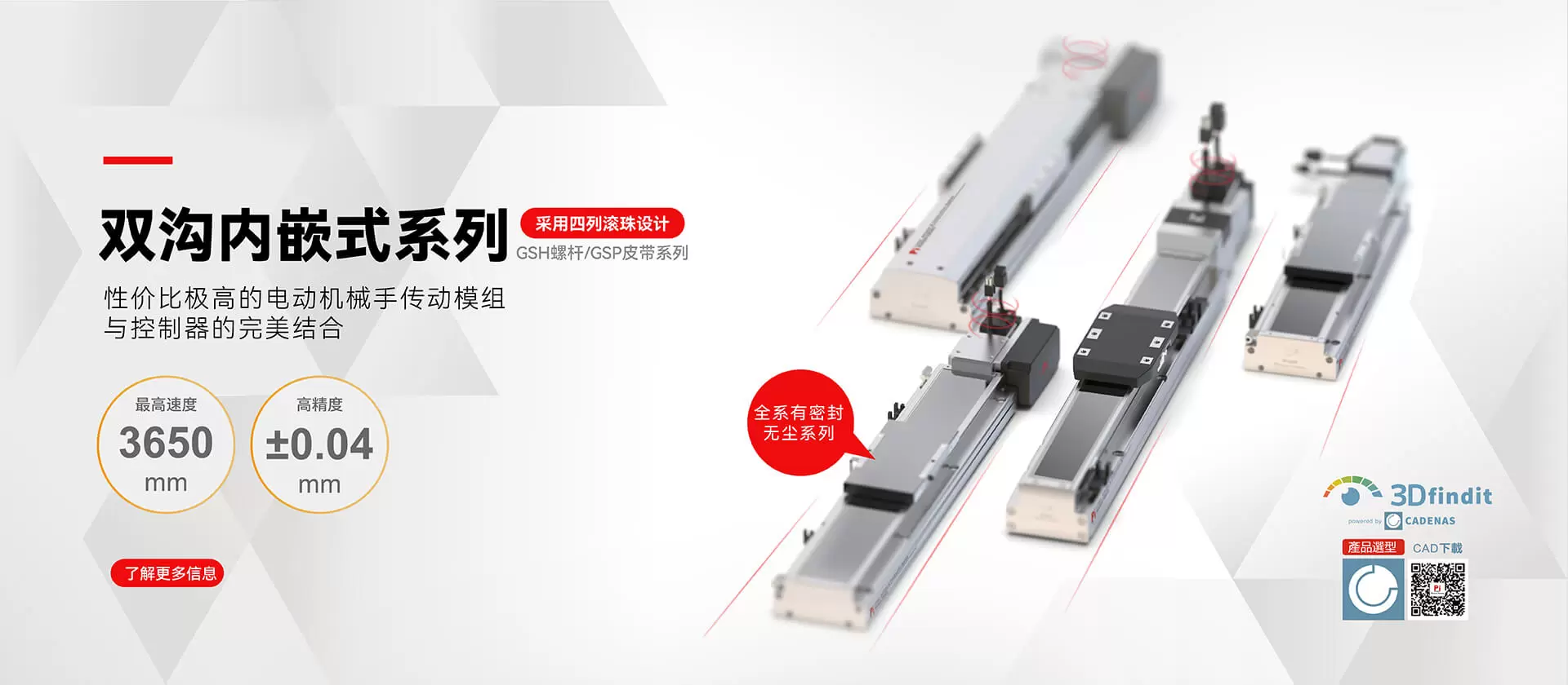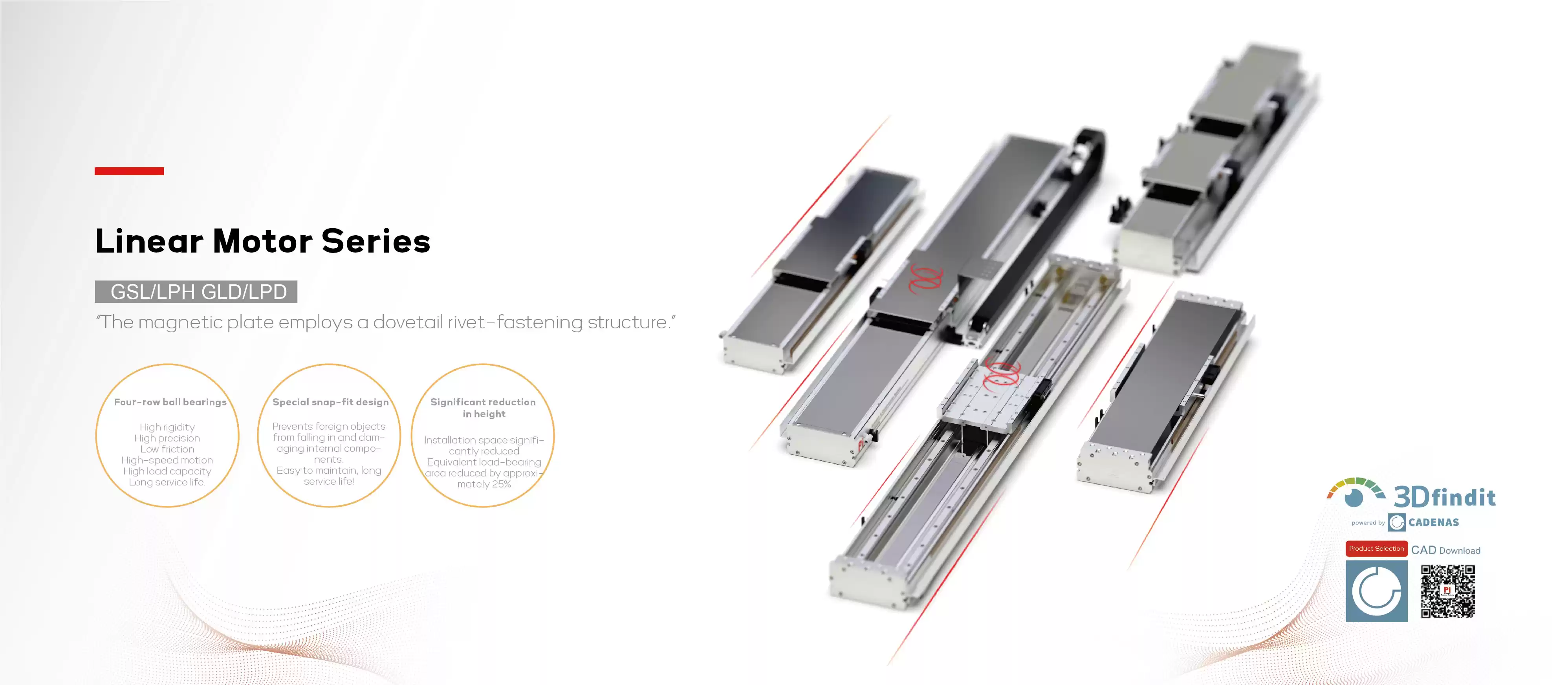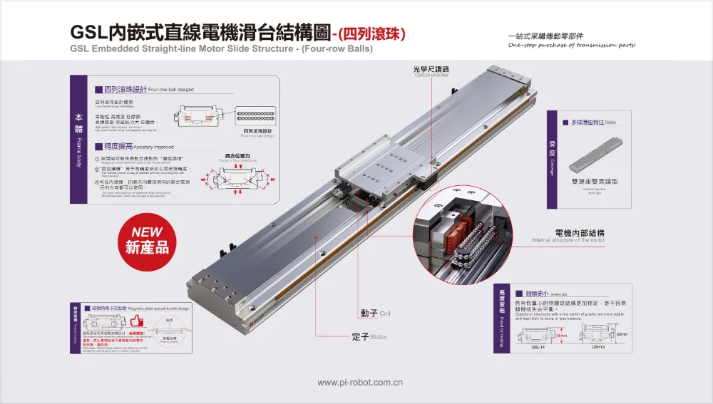 High precision, high efficiency, strong load capacity, with an effective load capacity of up to 150kg. Four column ball structure, four sided force bearing