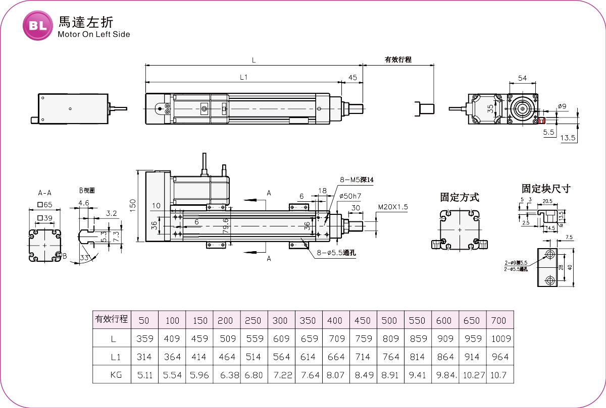 Stroke Pitch (mm)50-700mm/50Pitch