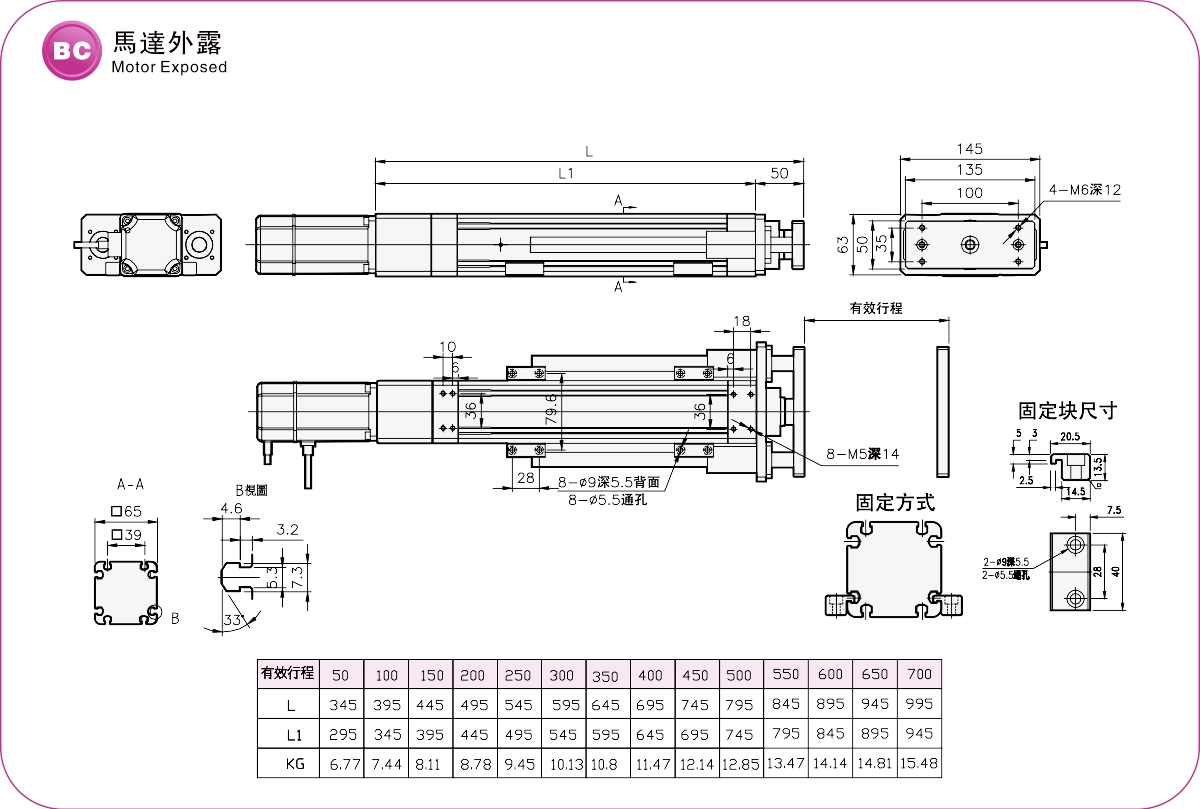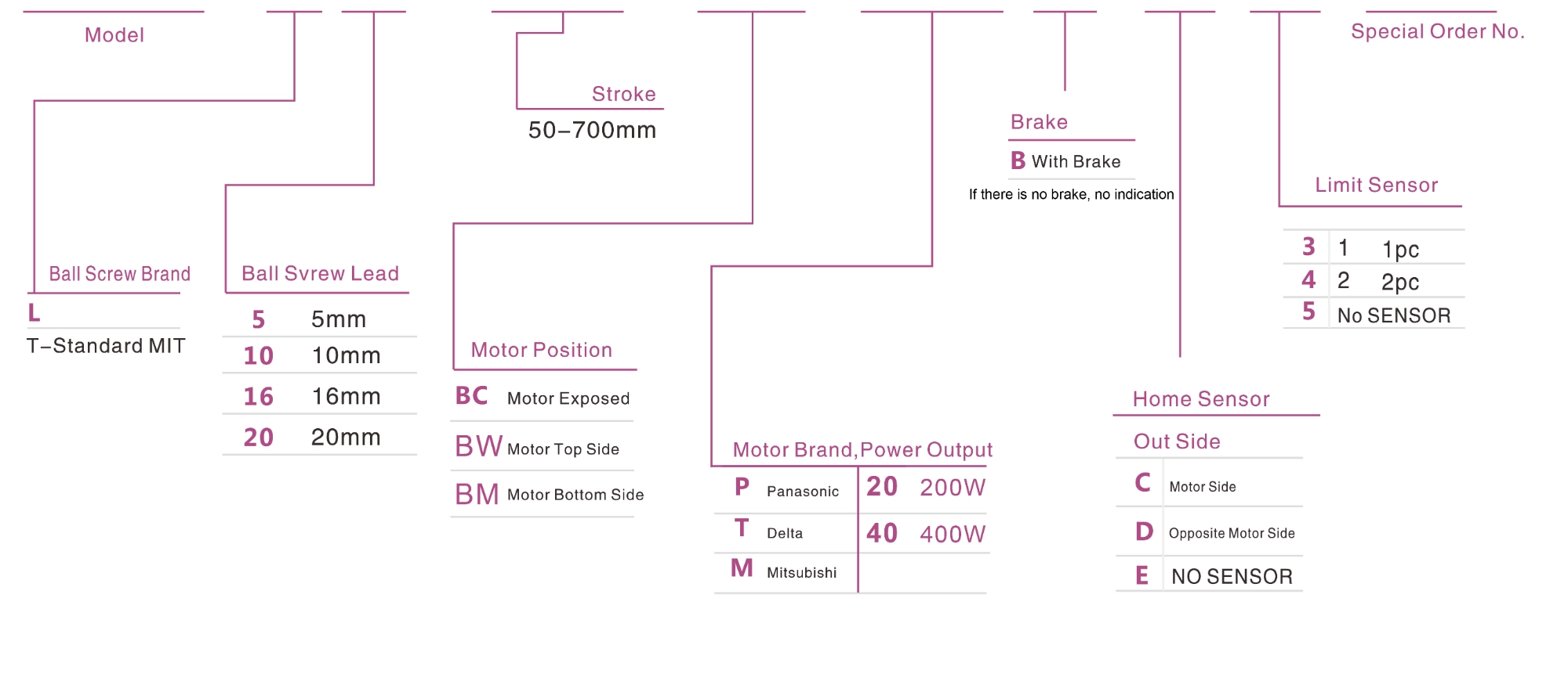Use WhereDriven ModeModel SpecificationMoter Output(w)Width(mm)Repeatability(mm)Ball Screw SpecMaximum Payload(kg)