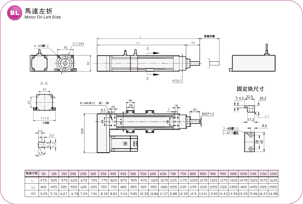 Stroke Pitch (mm)50-1200mm/50Pitch