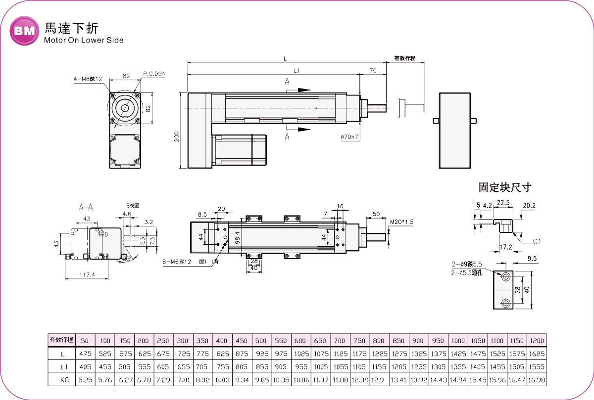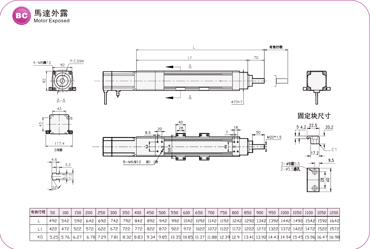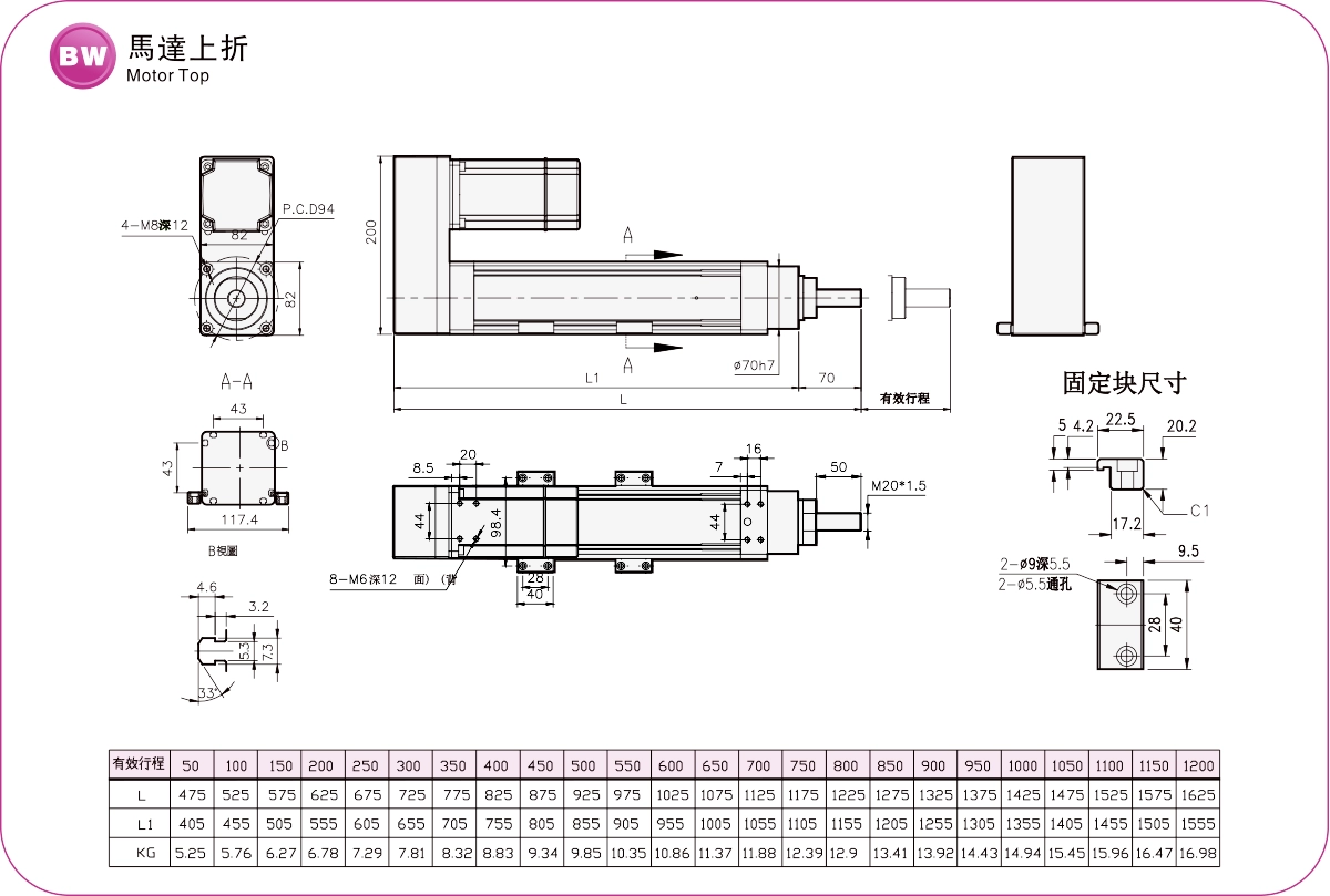 Stroke Pitch (mm)50-1200mm/50Pitch