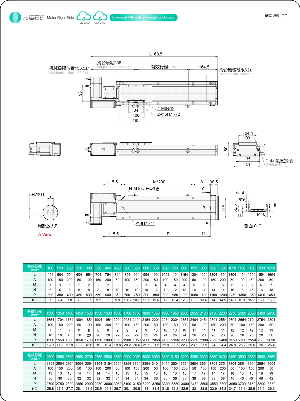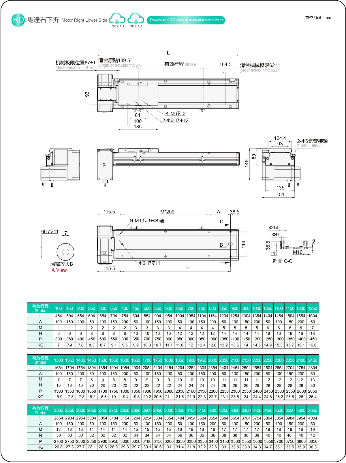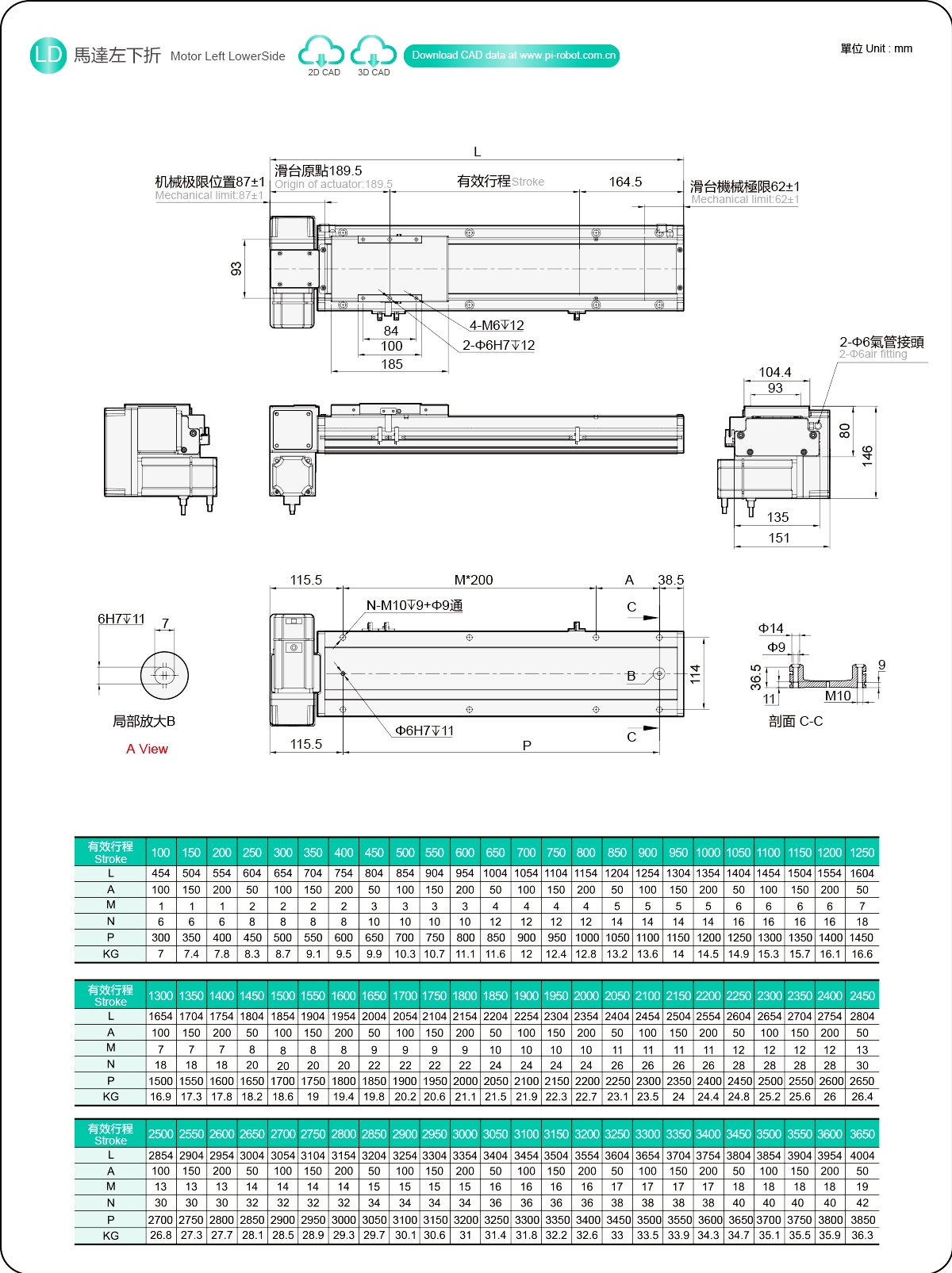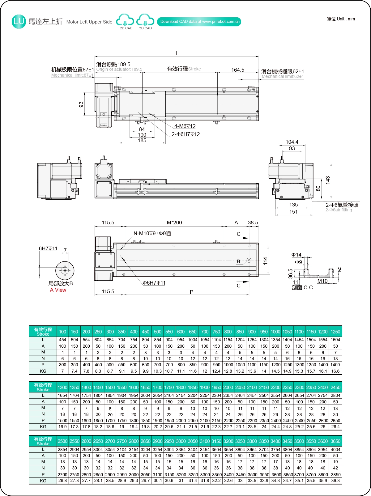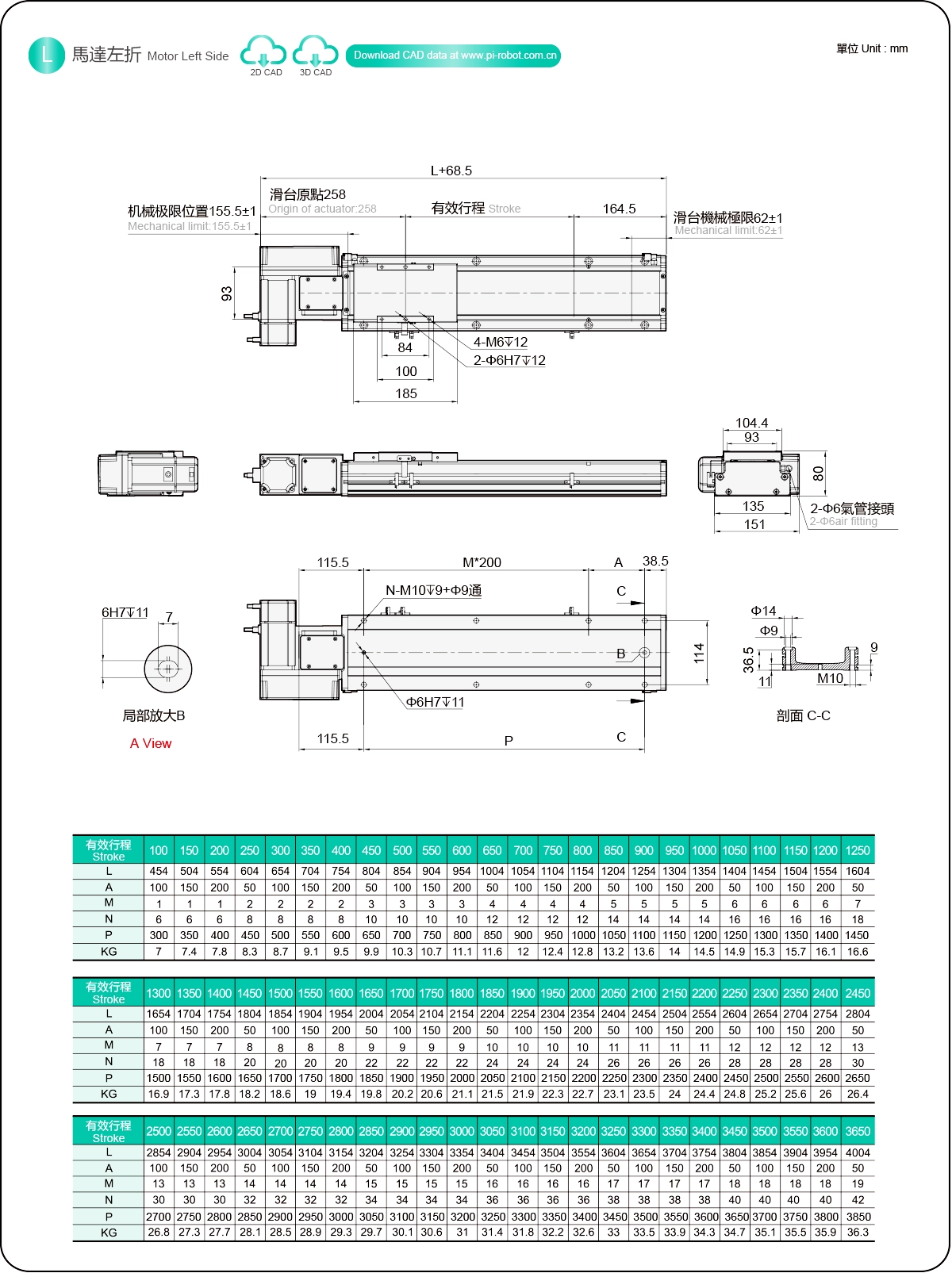| Stroke Pitch (mm) | 100-3650mm/50mm Pitch | ||