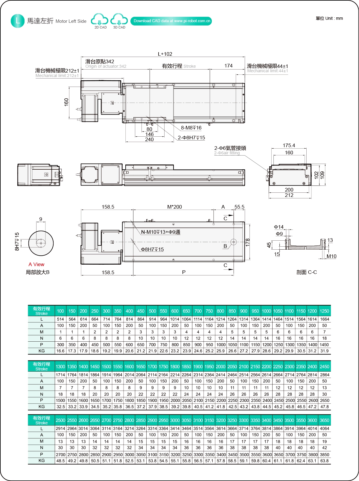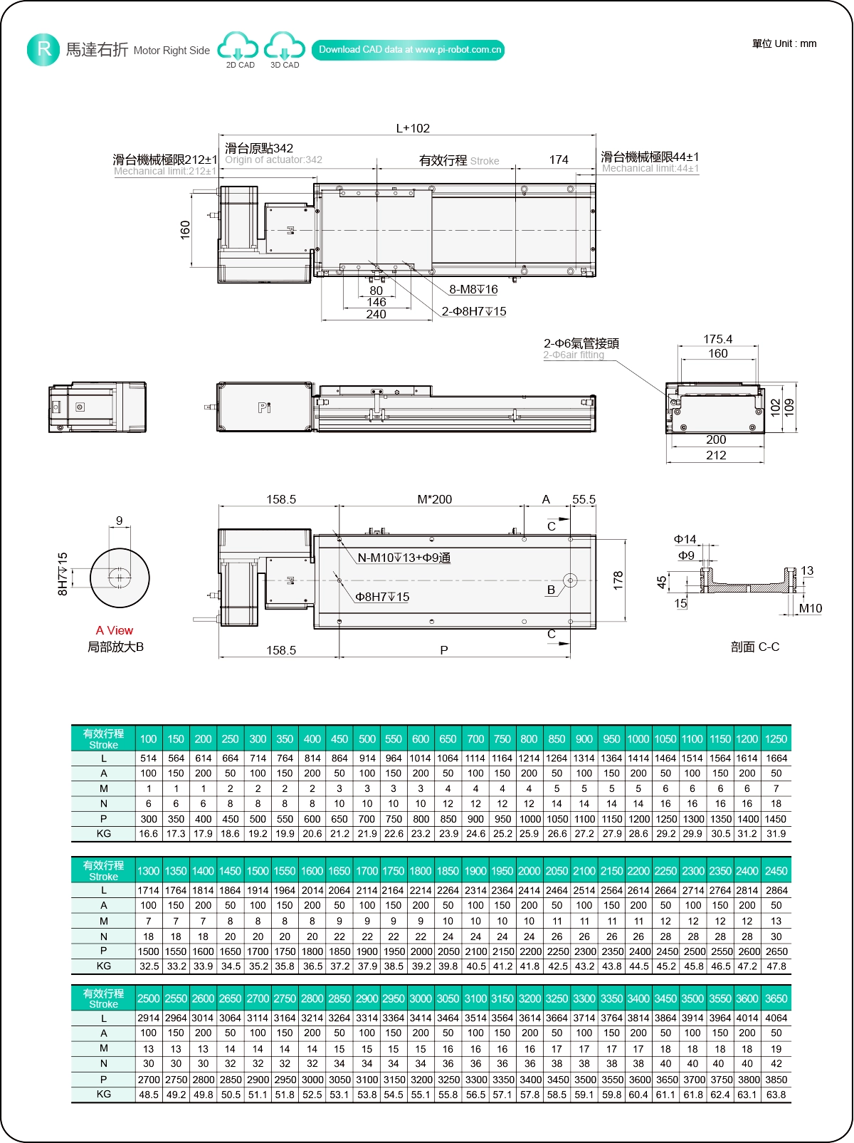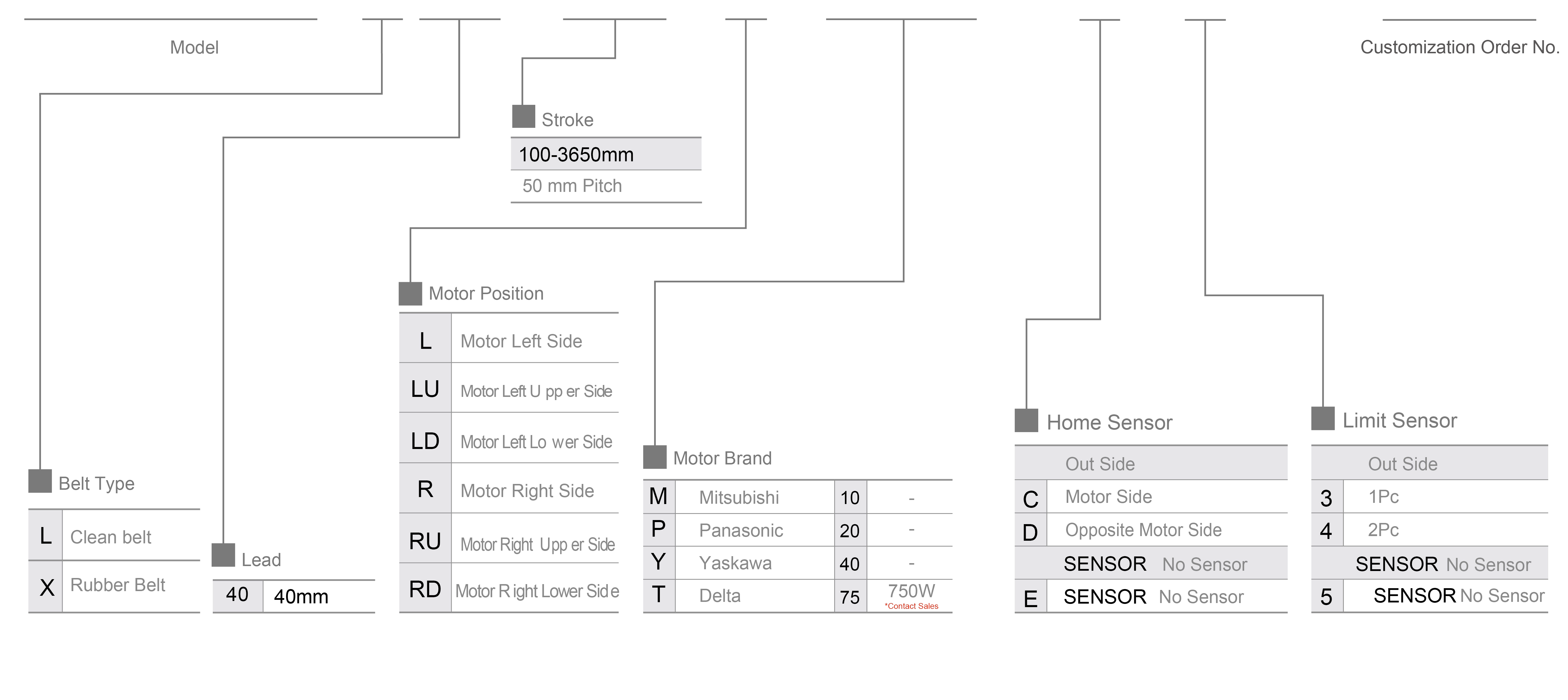 Stroke Pitch (mm)100-3650mm/50mm Pitch