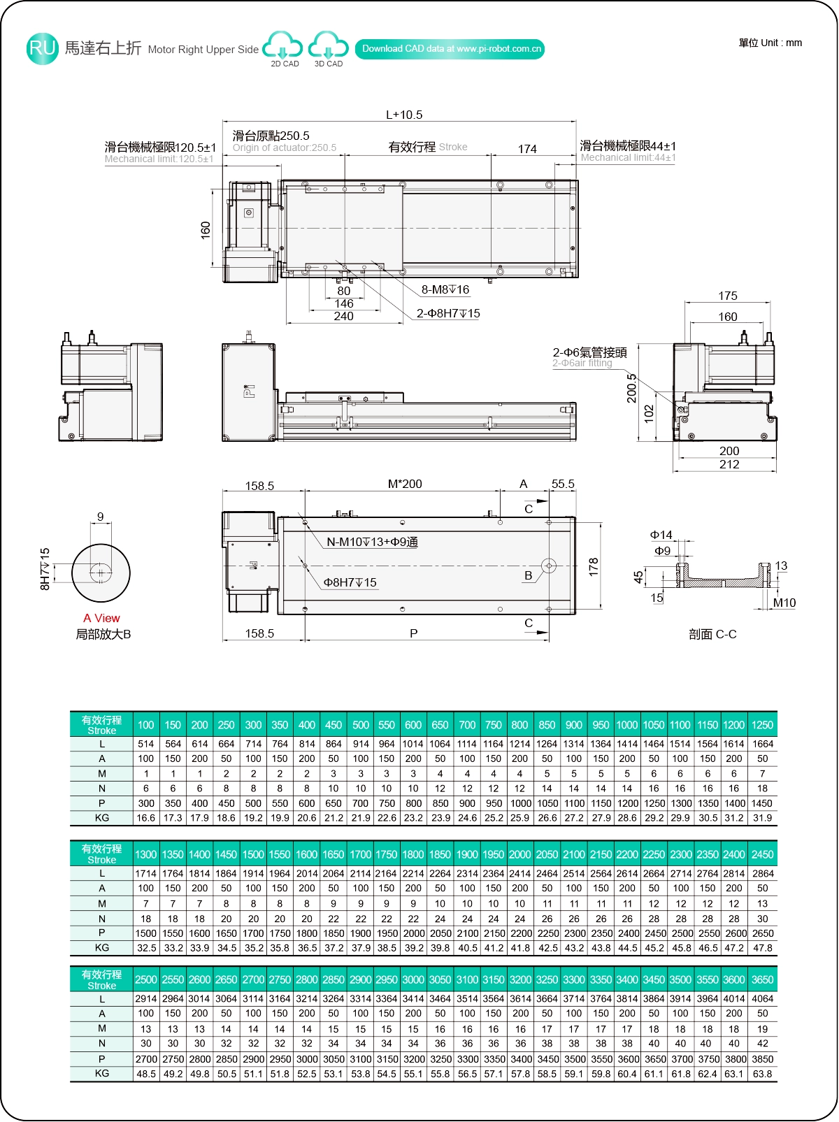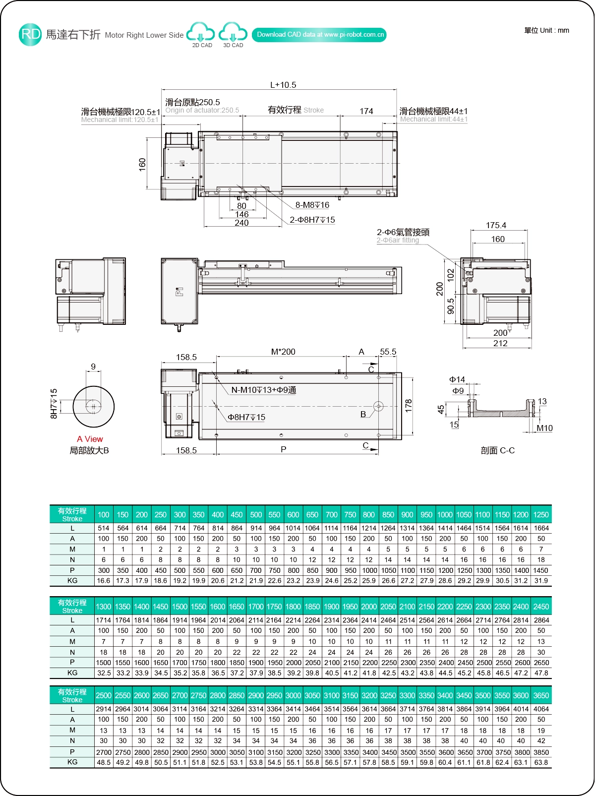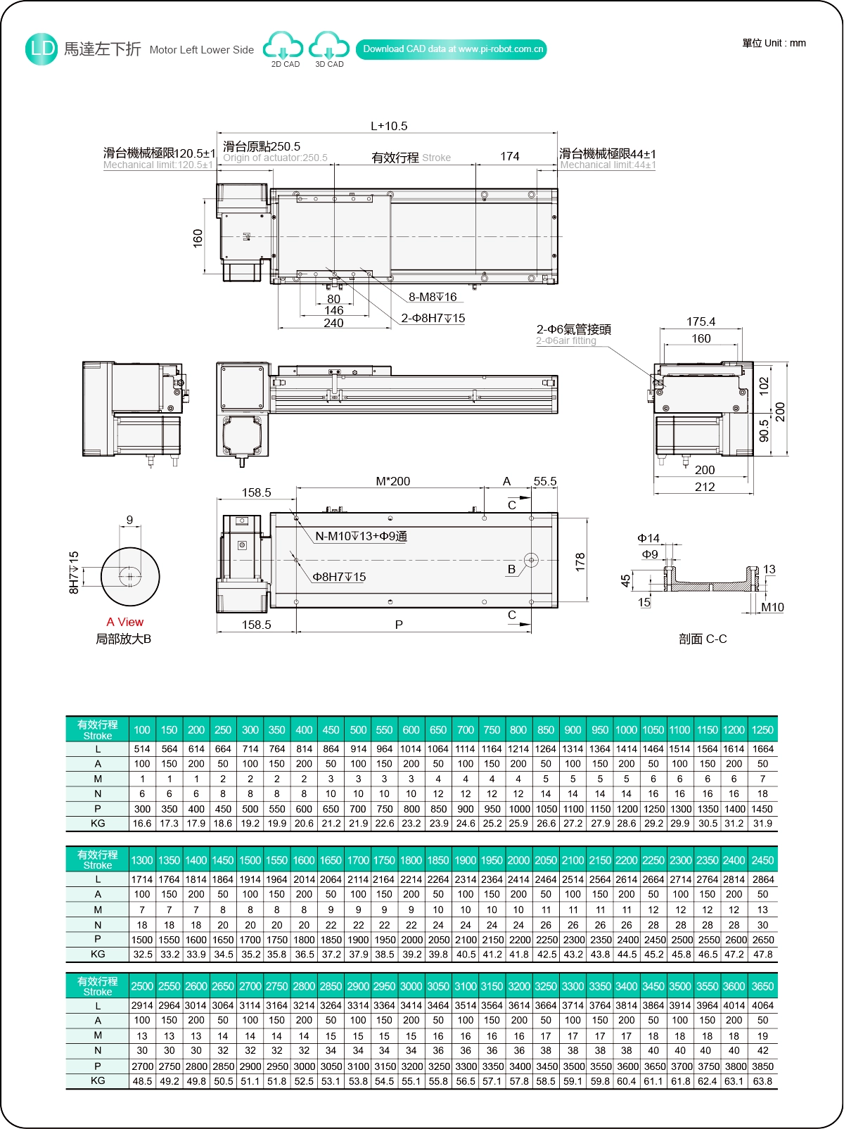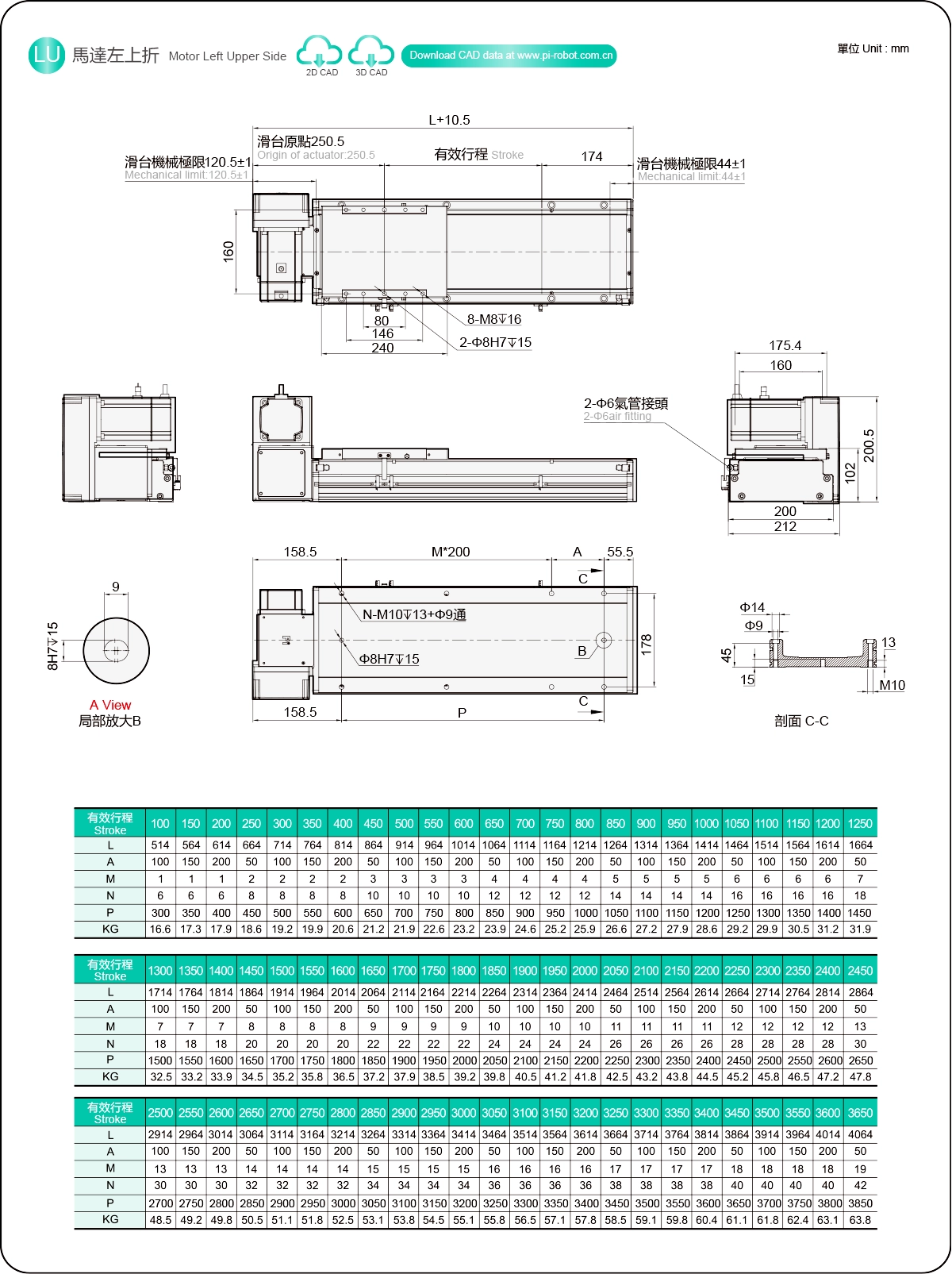 Stroke Pitch (mm)100-3650mm/50mm Pitch