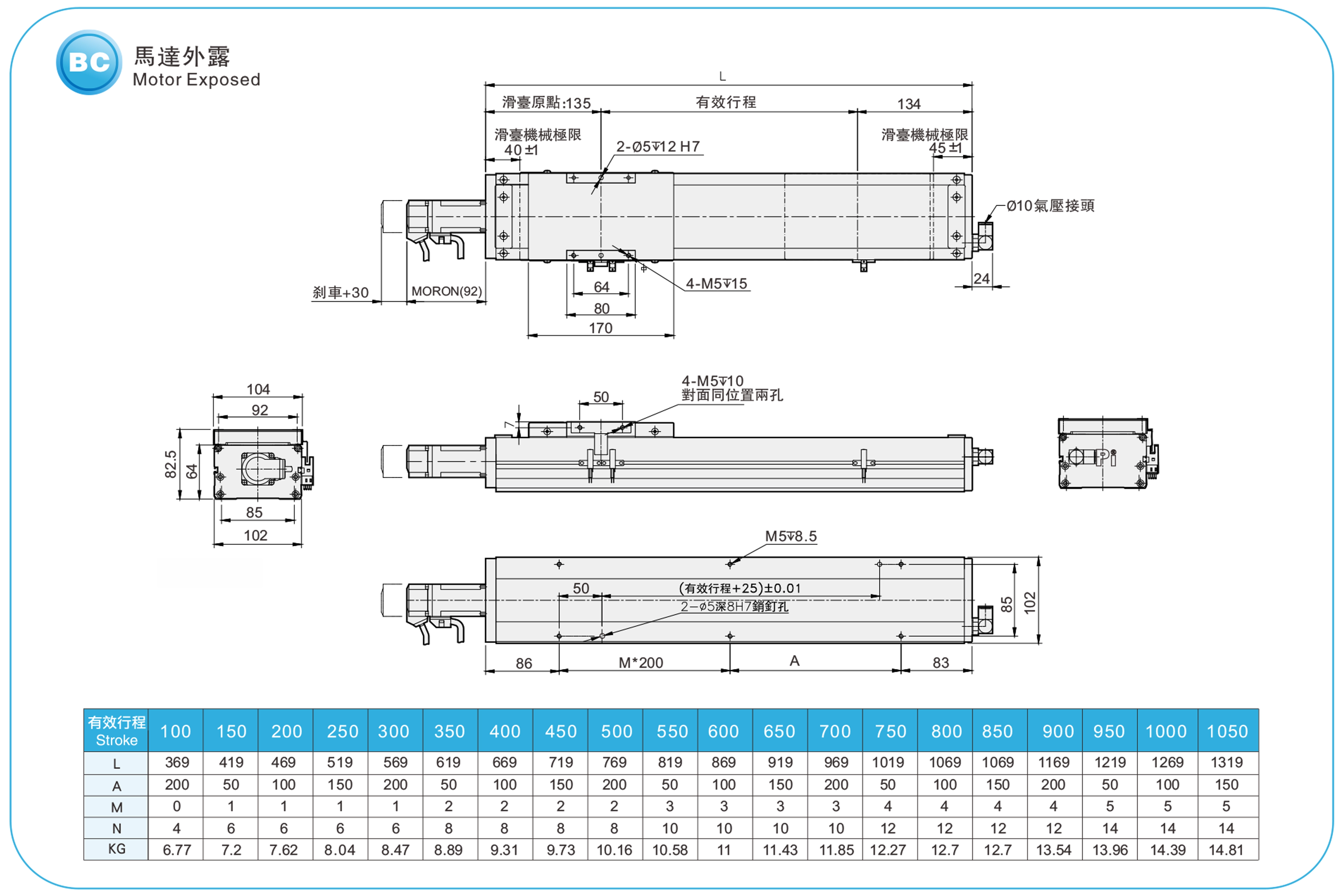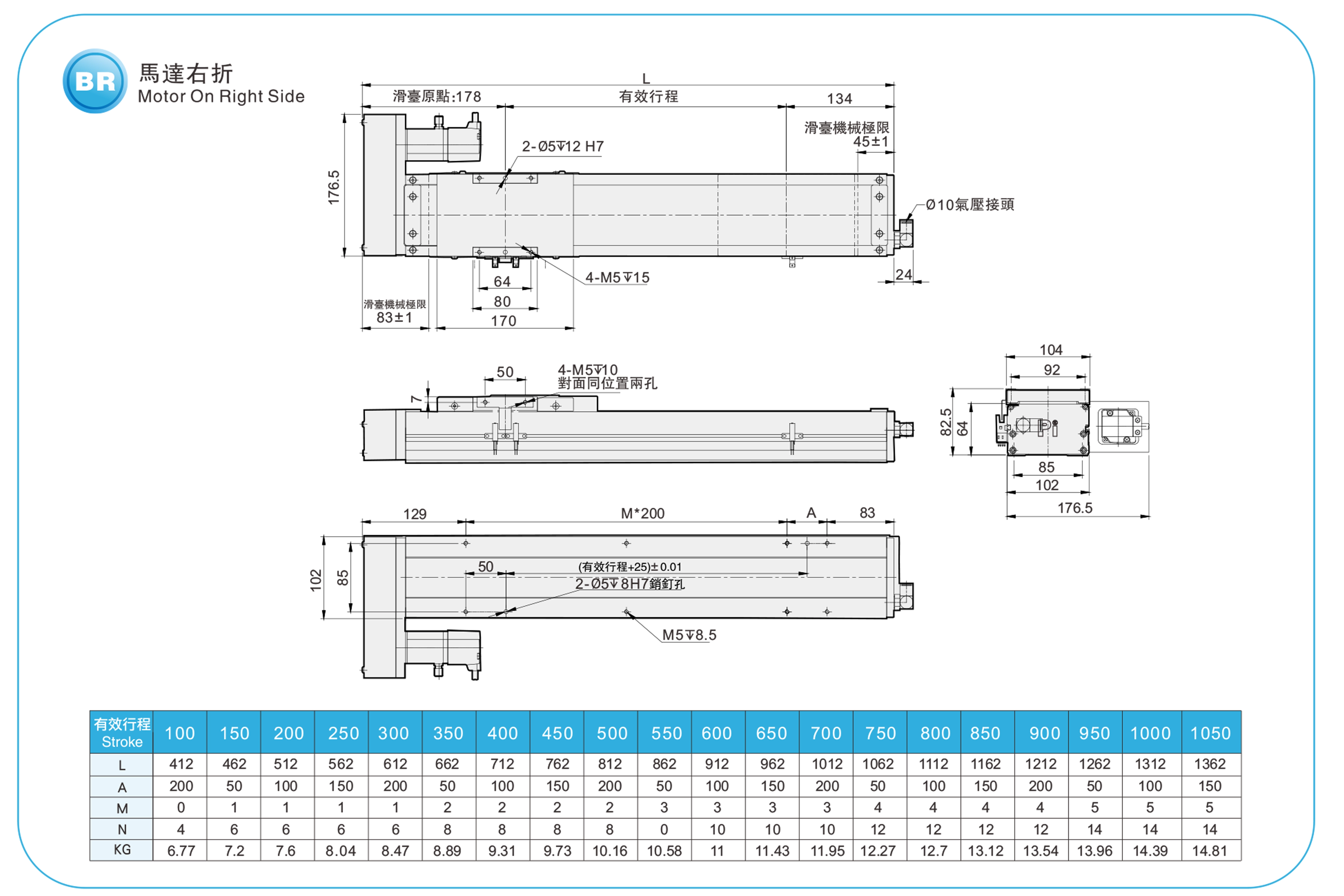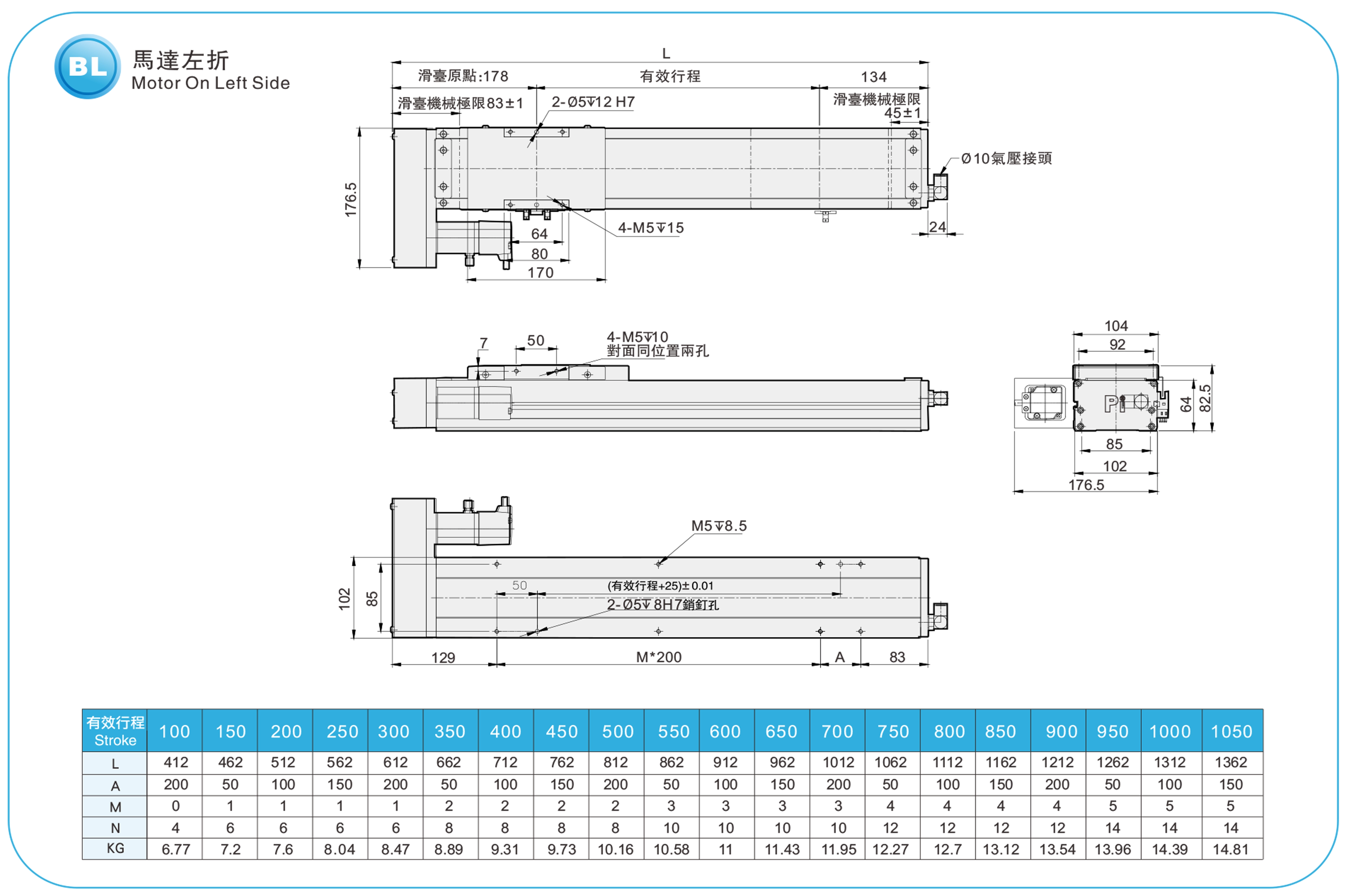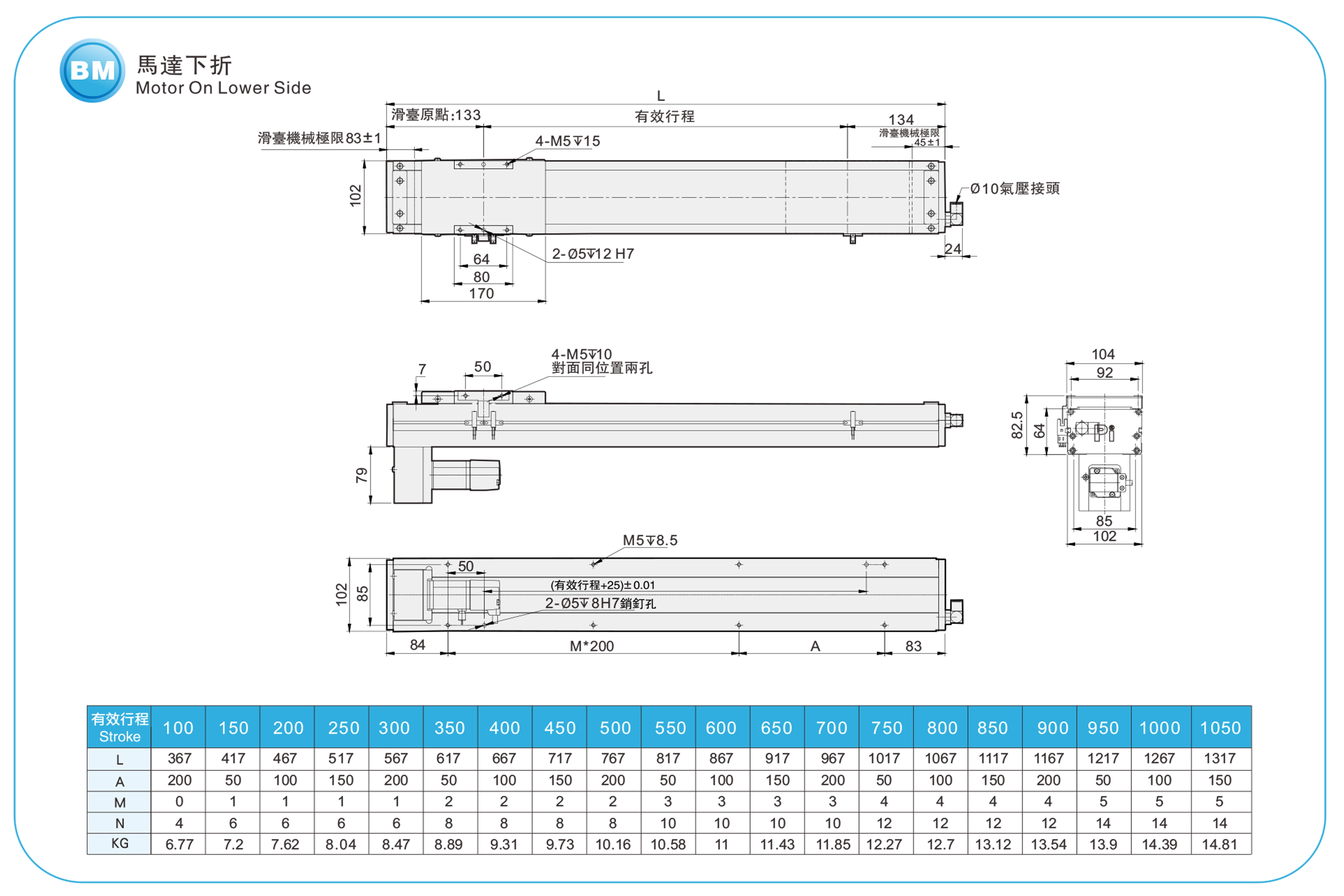| Stroke Pitch (mm) | 100-1050mm/50mm Pitch | |||||