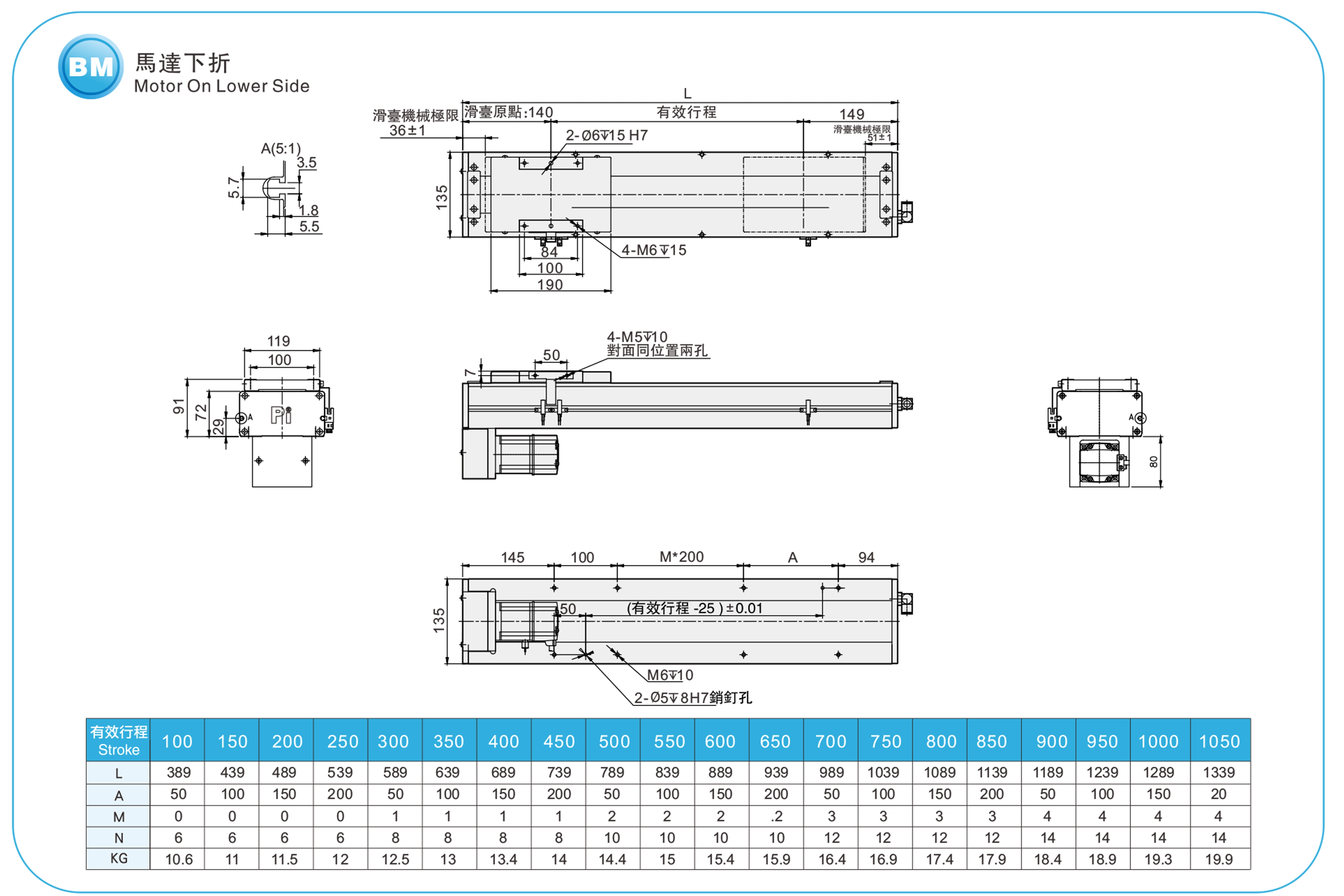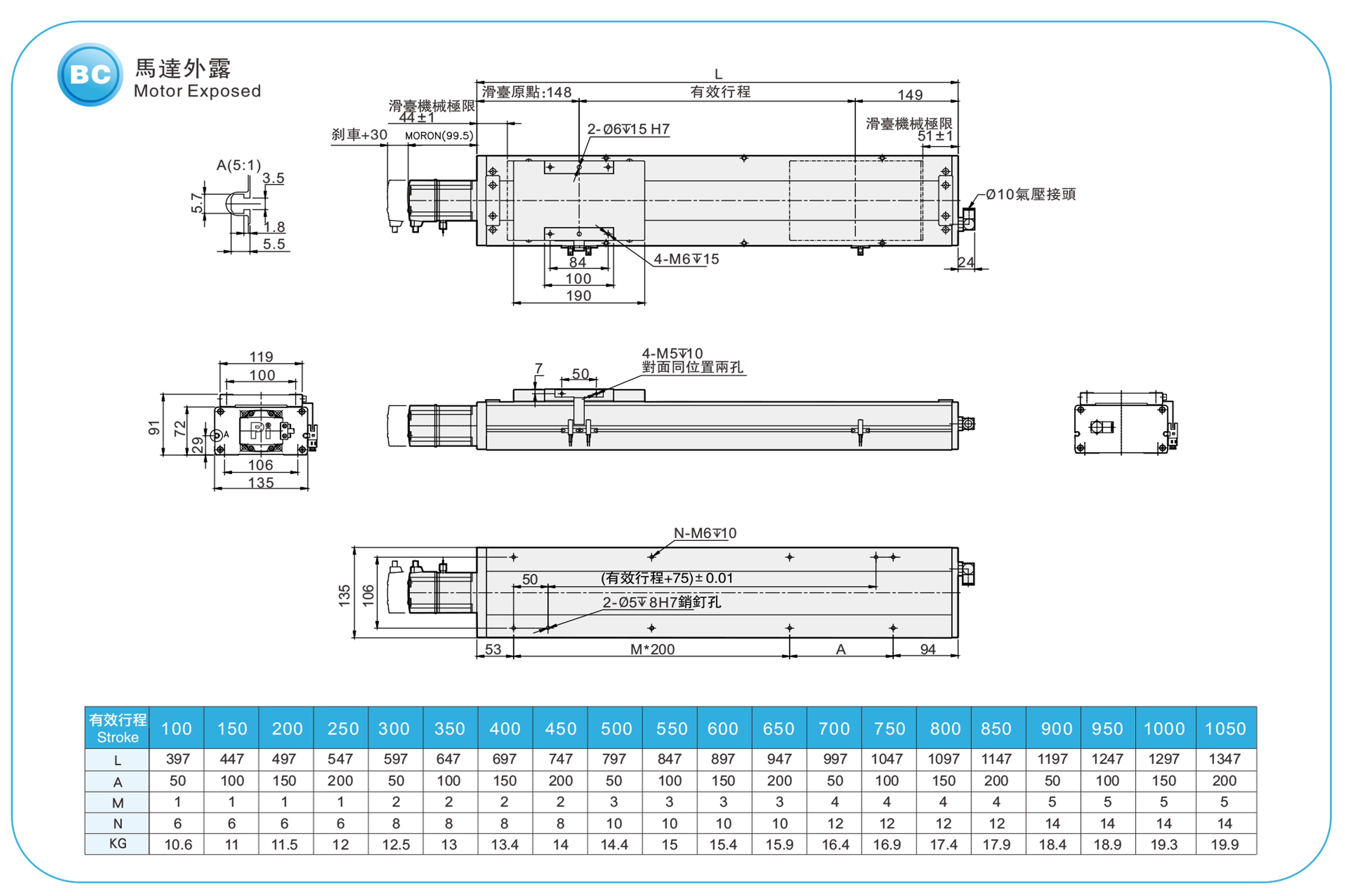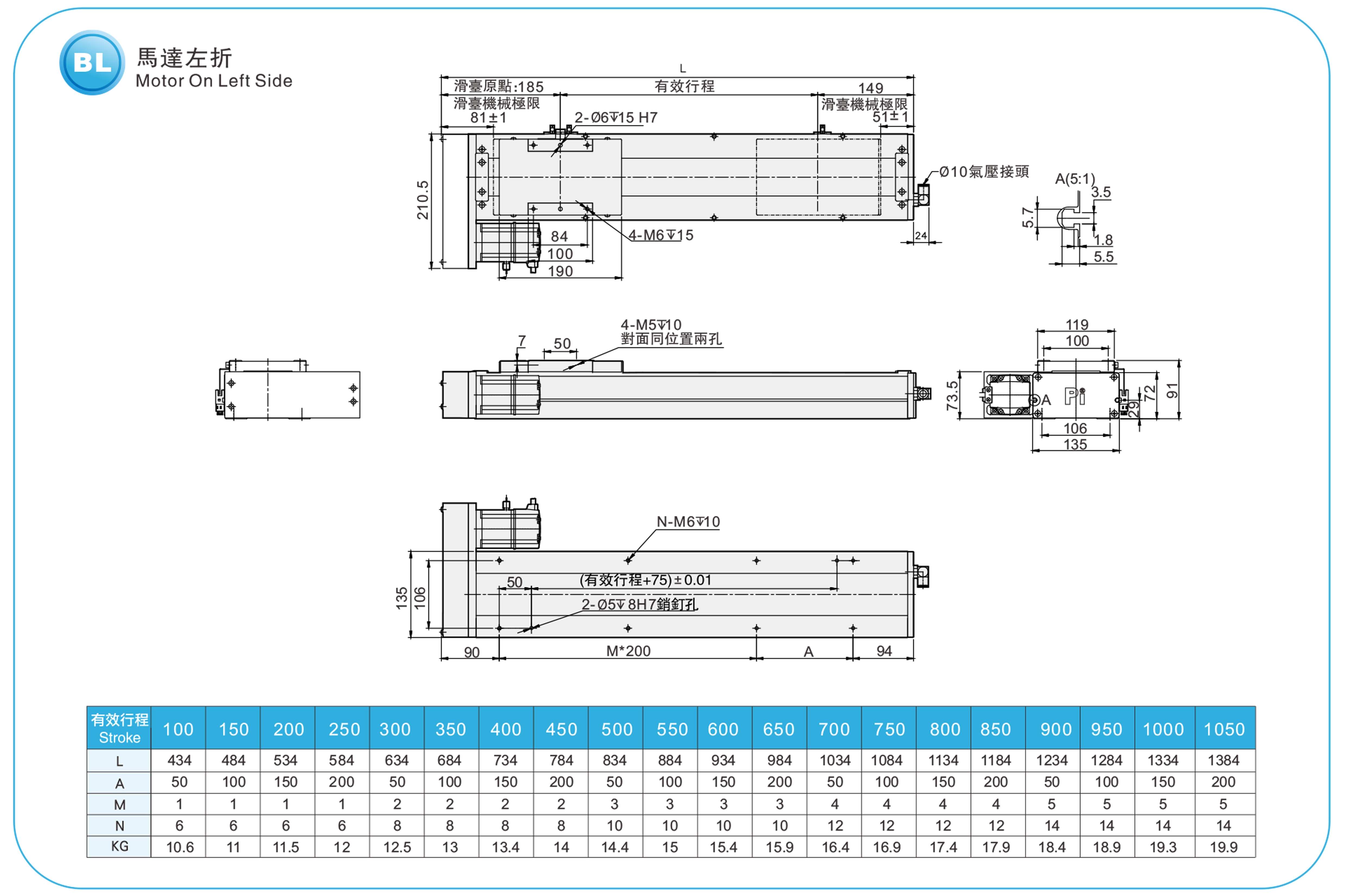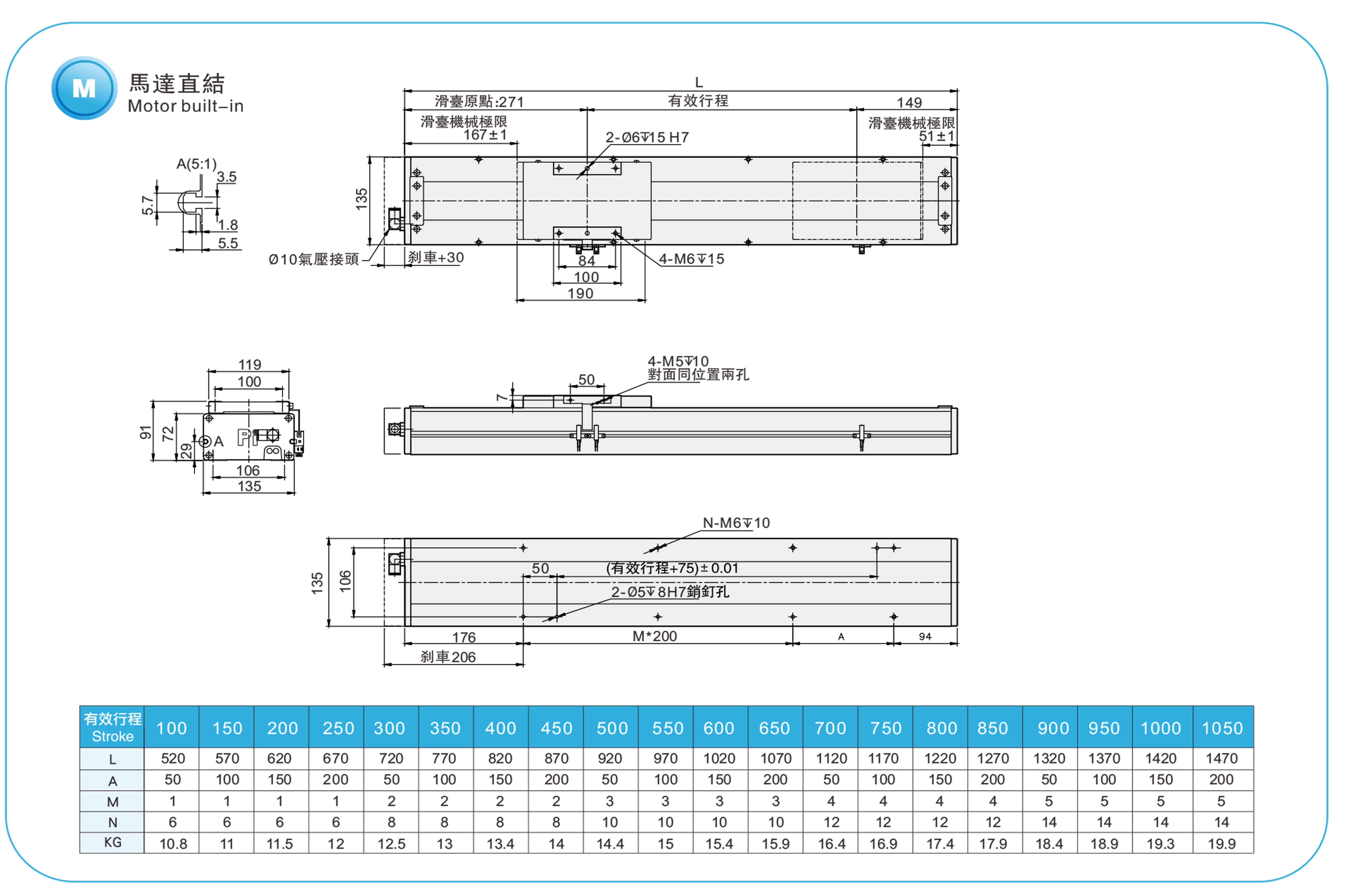 Stroke Pitch (mm)100-1050mm/50mm Pitch