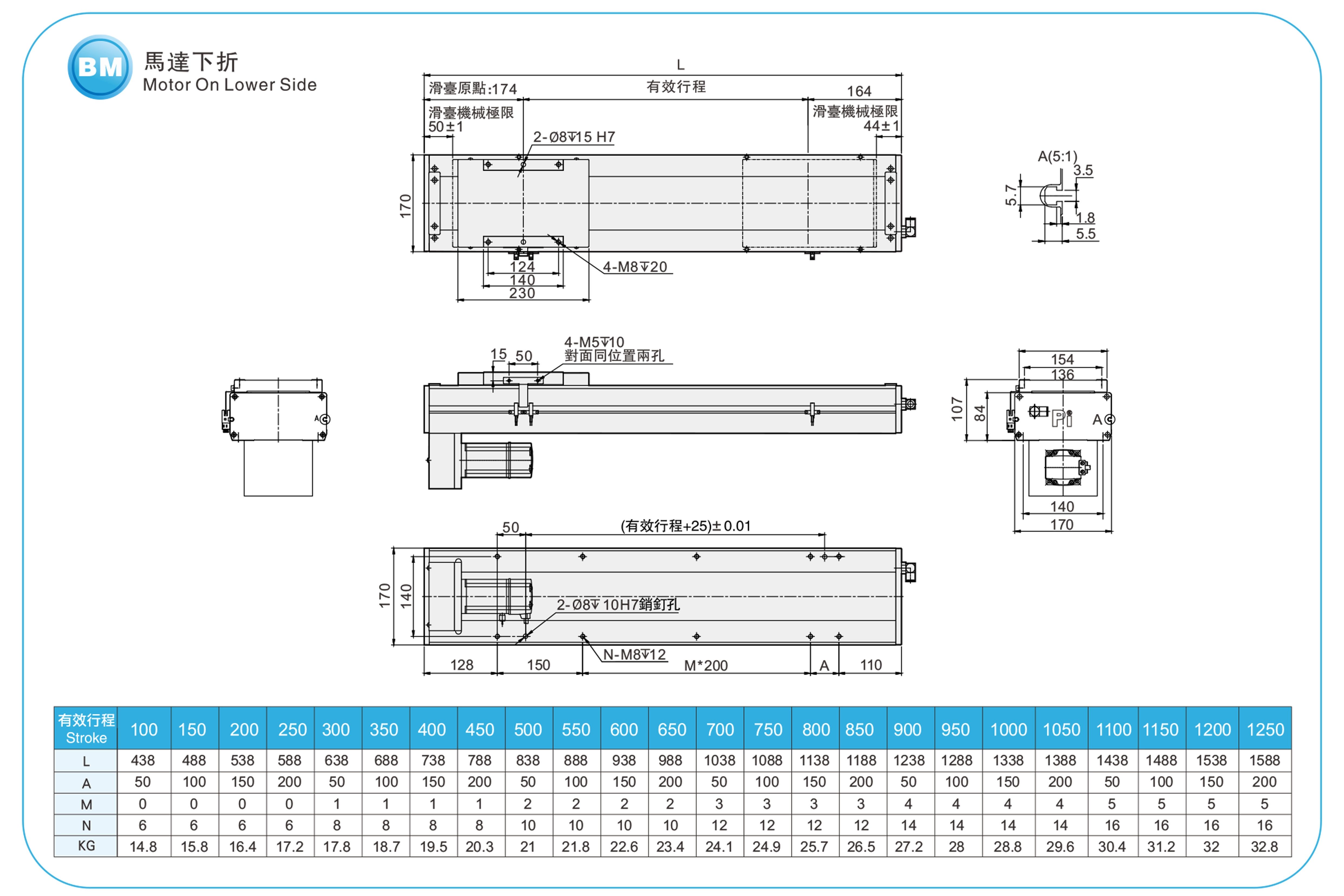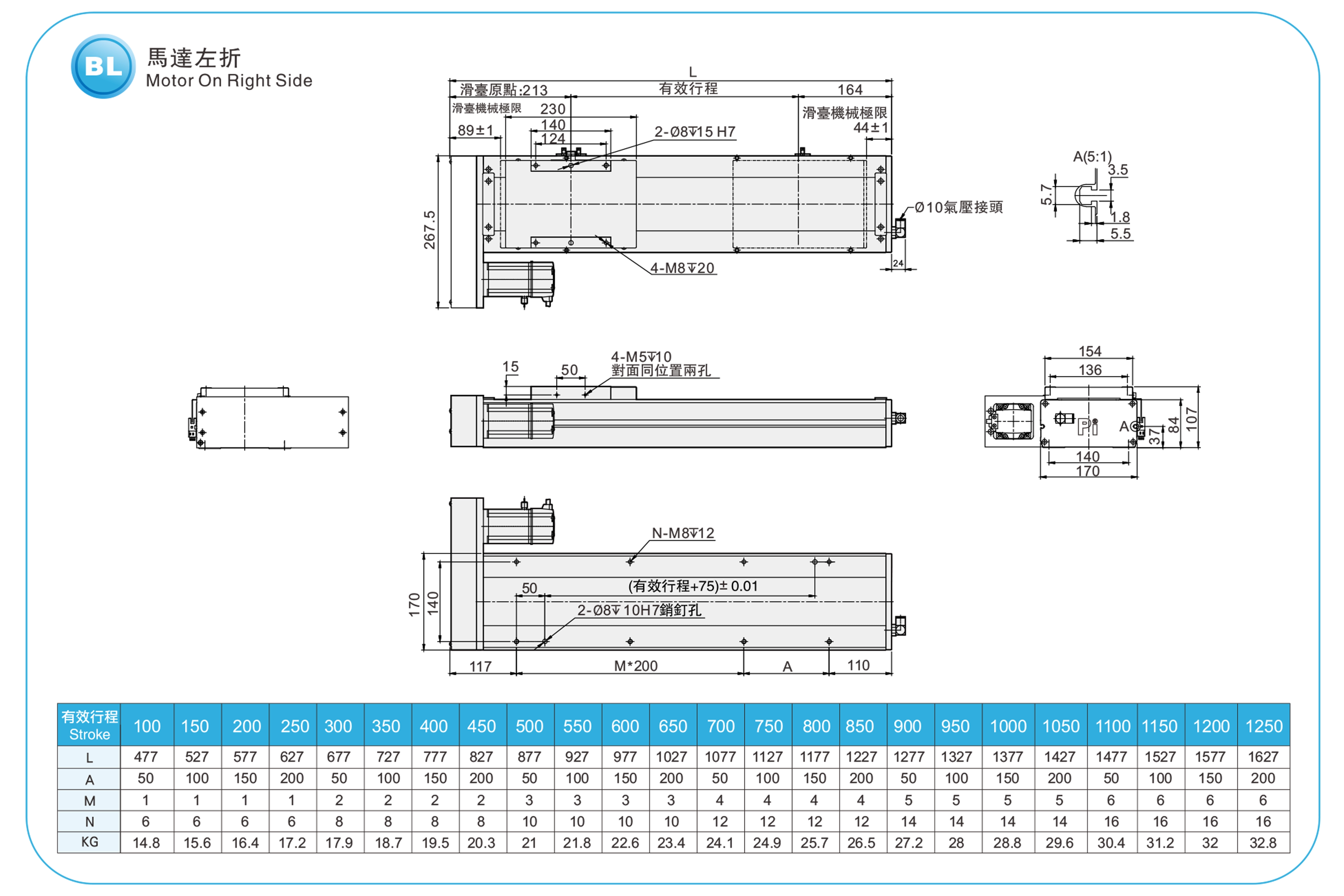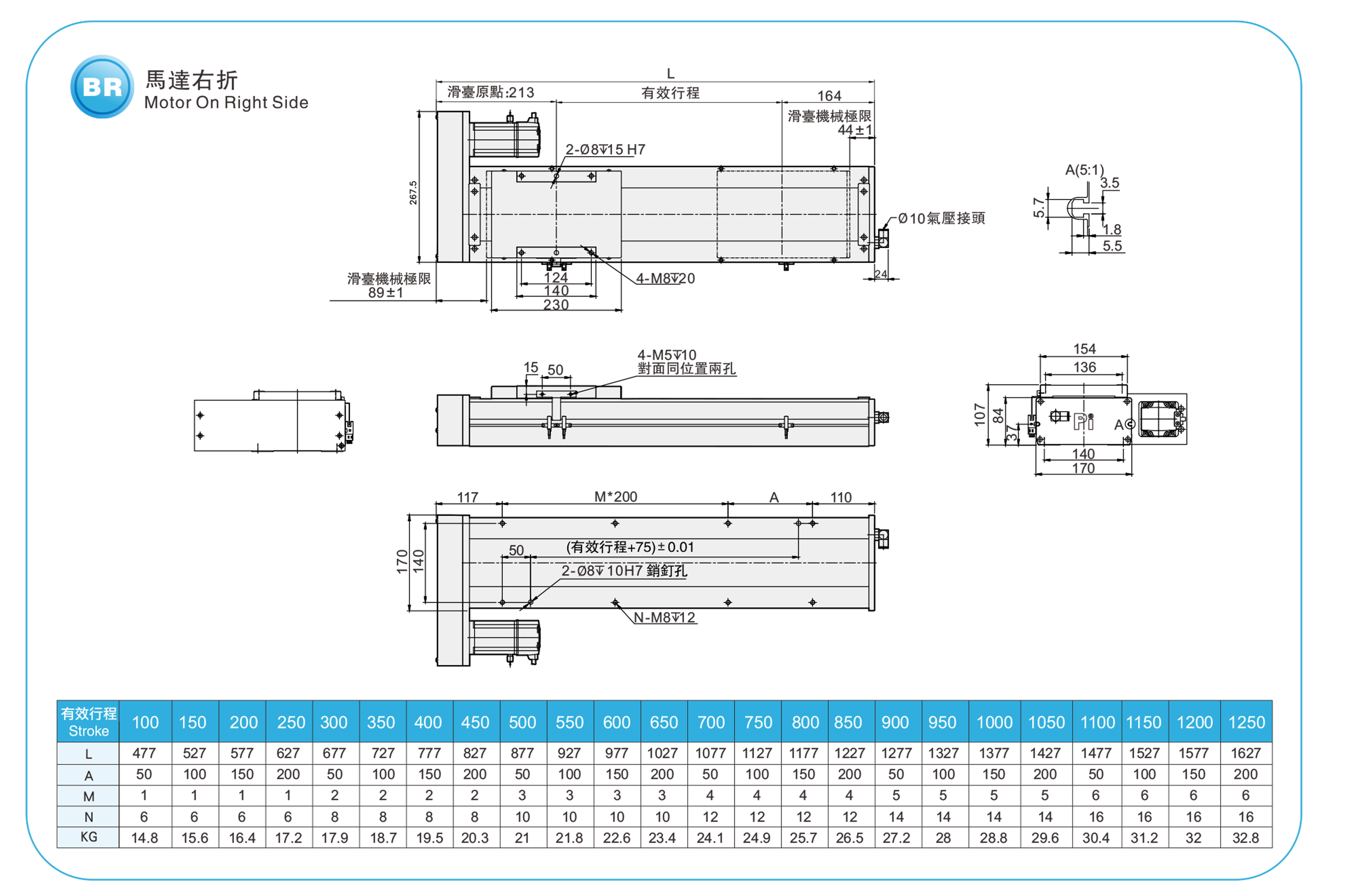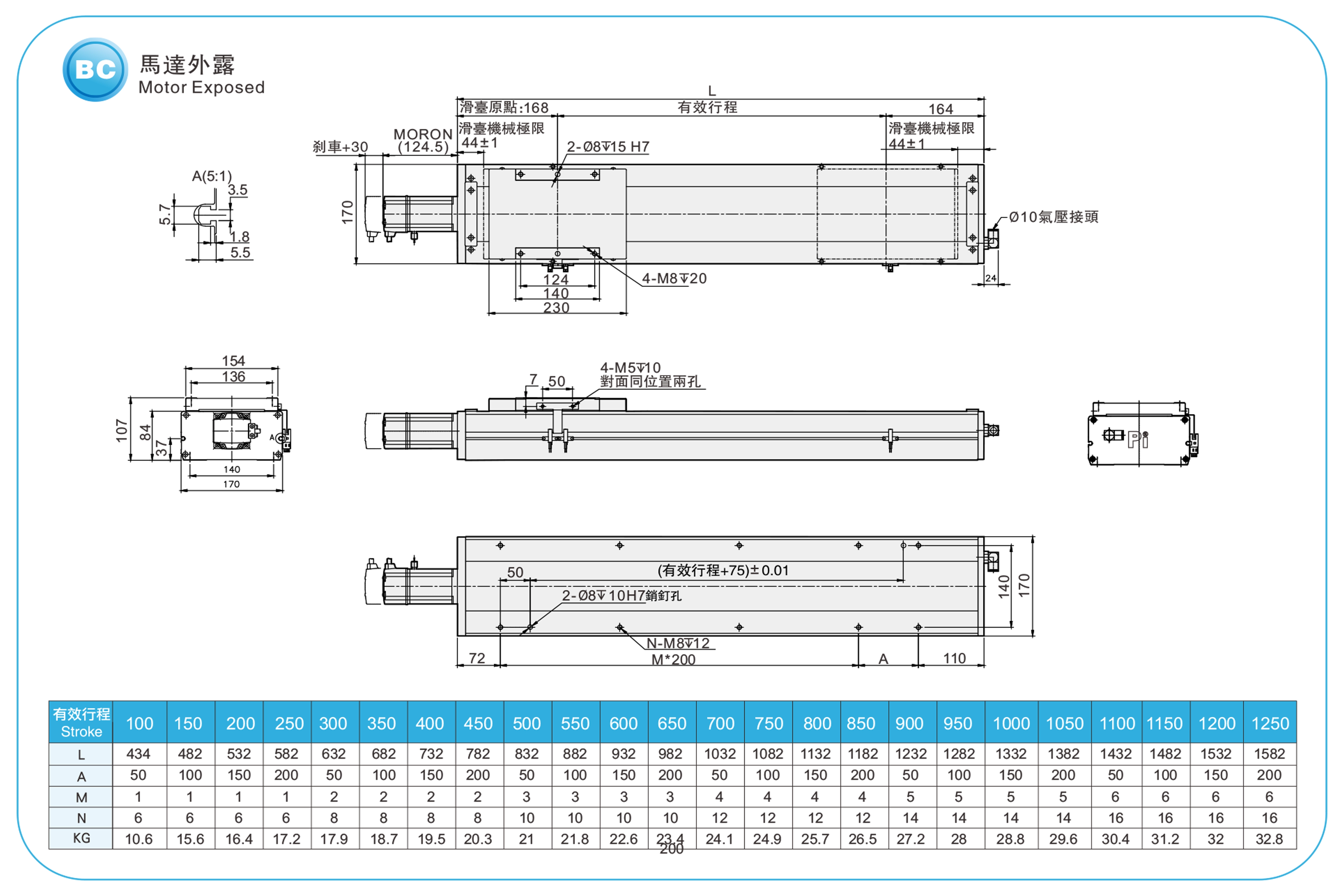 Stroke Pitch (mm)100-1250mm/50mm Pitch