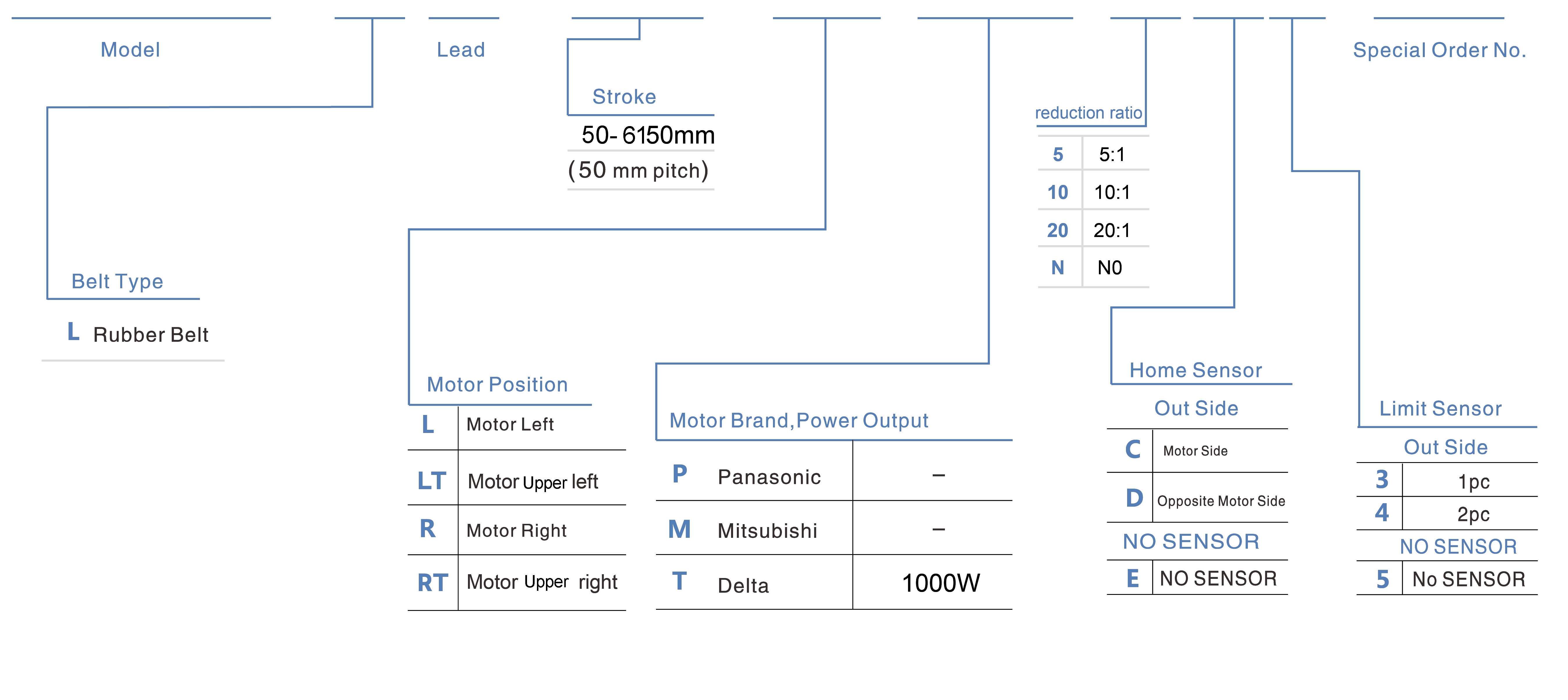 | Stroke Pitch (mm) | 50-6150mm/50mm Pitch | ||