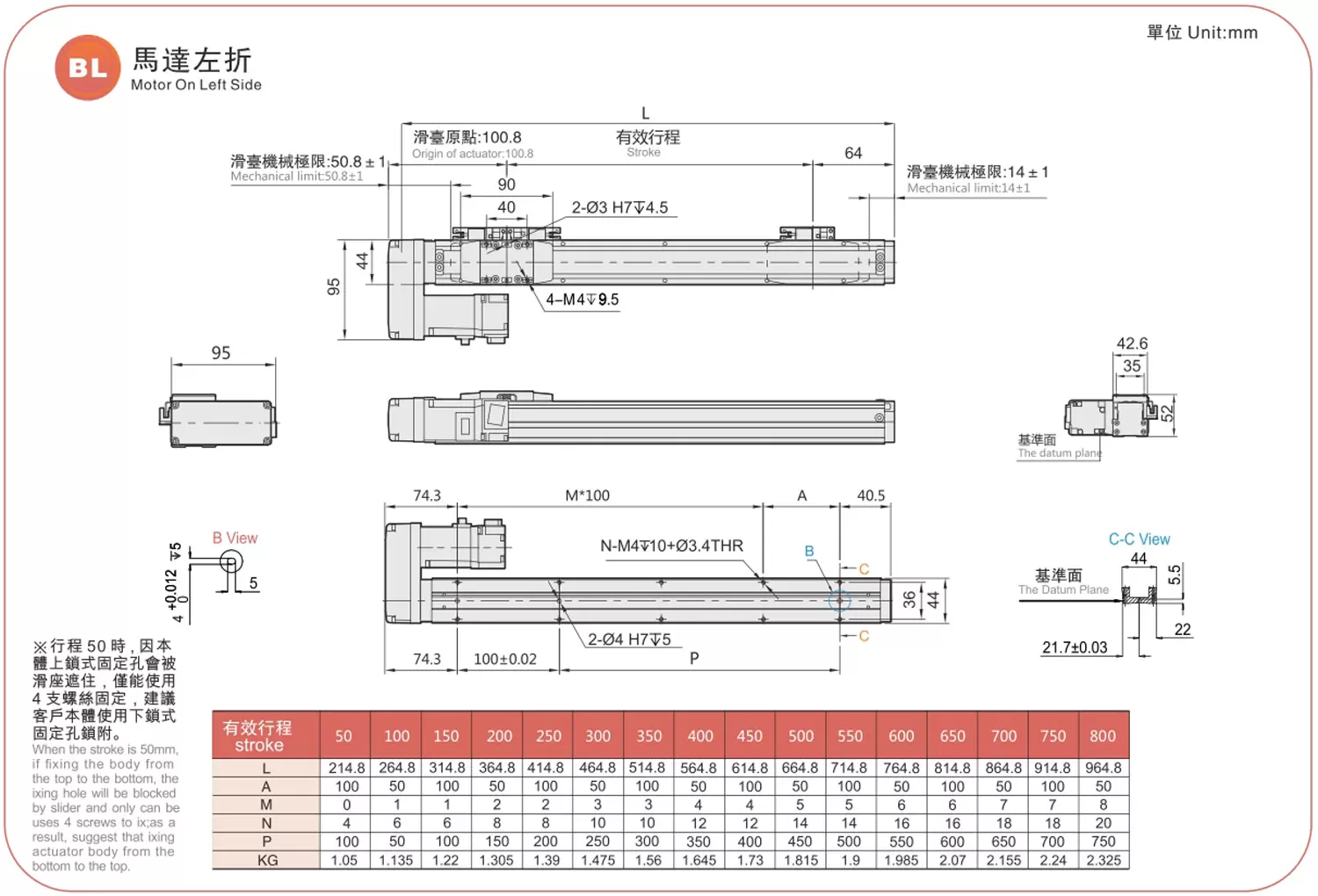 Stroke Pitch (mm) | 50-800mm/50mm Pitch | |||||