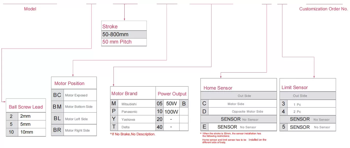 Stroke Pitch (mm)50-800mm/50mm Pitch