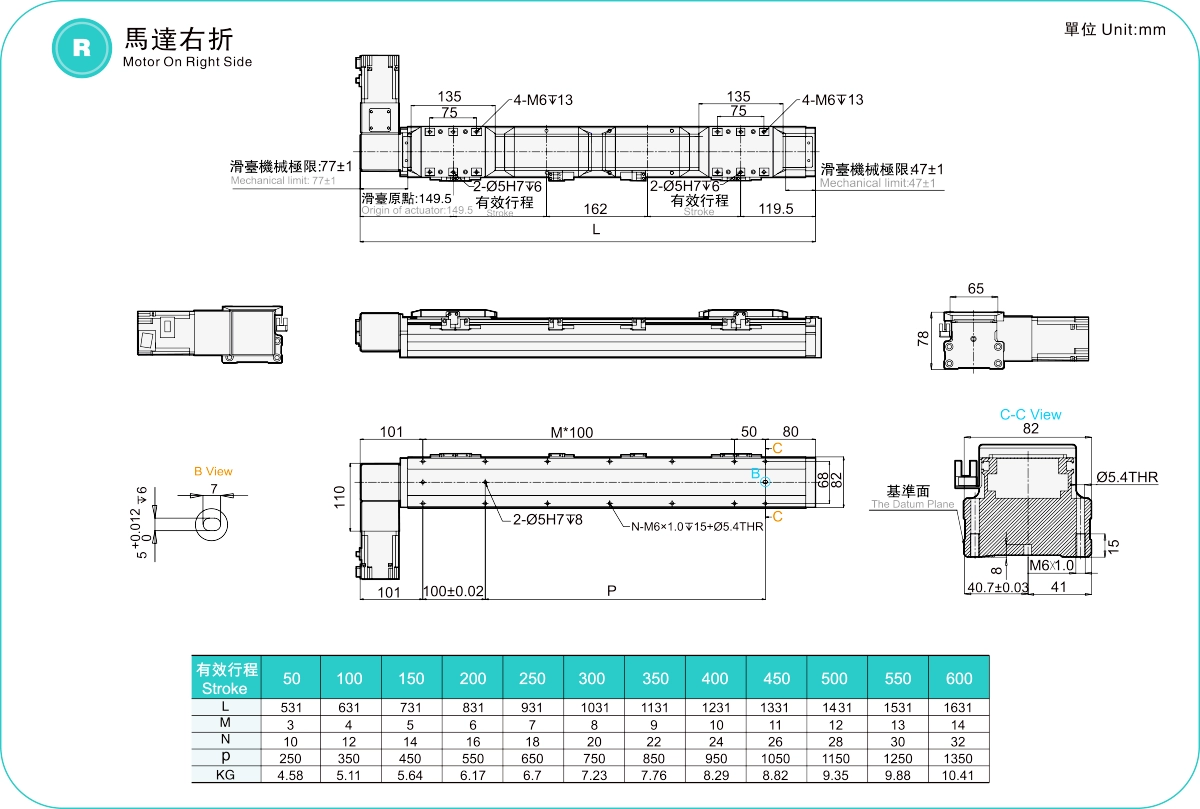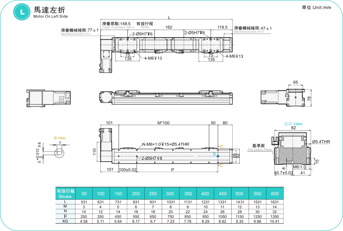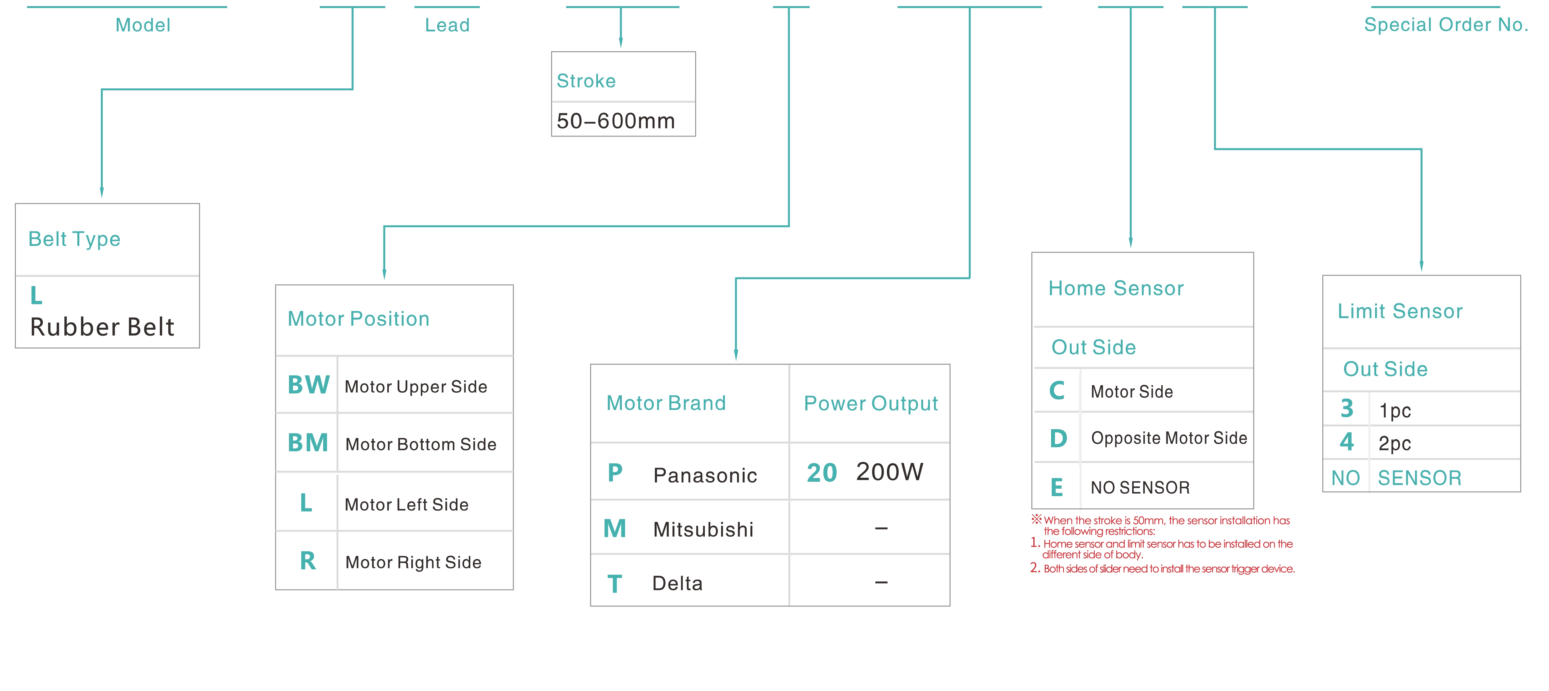 | Stroke Pitch (mm) | 50-600mm/50mm Pitch | ||
