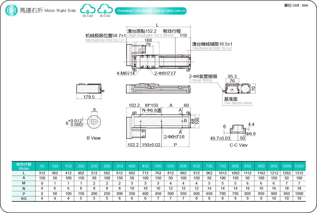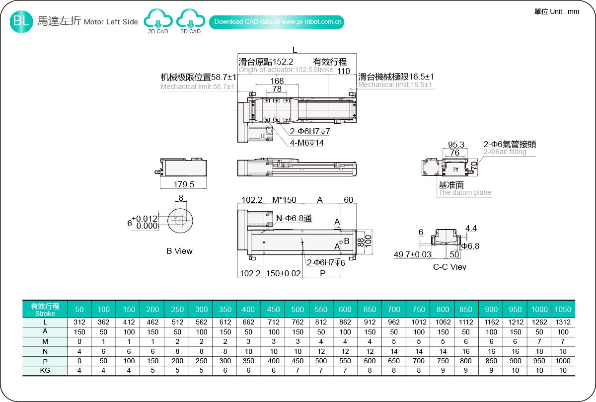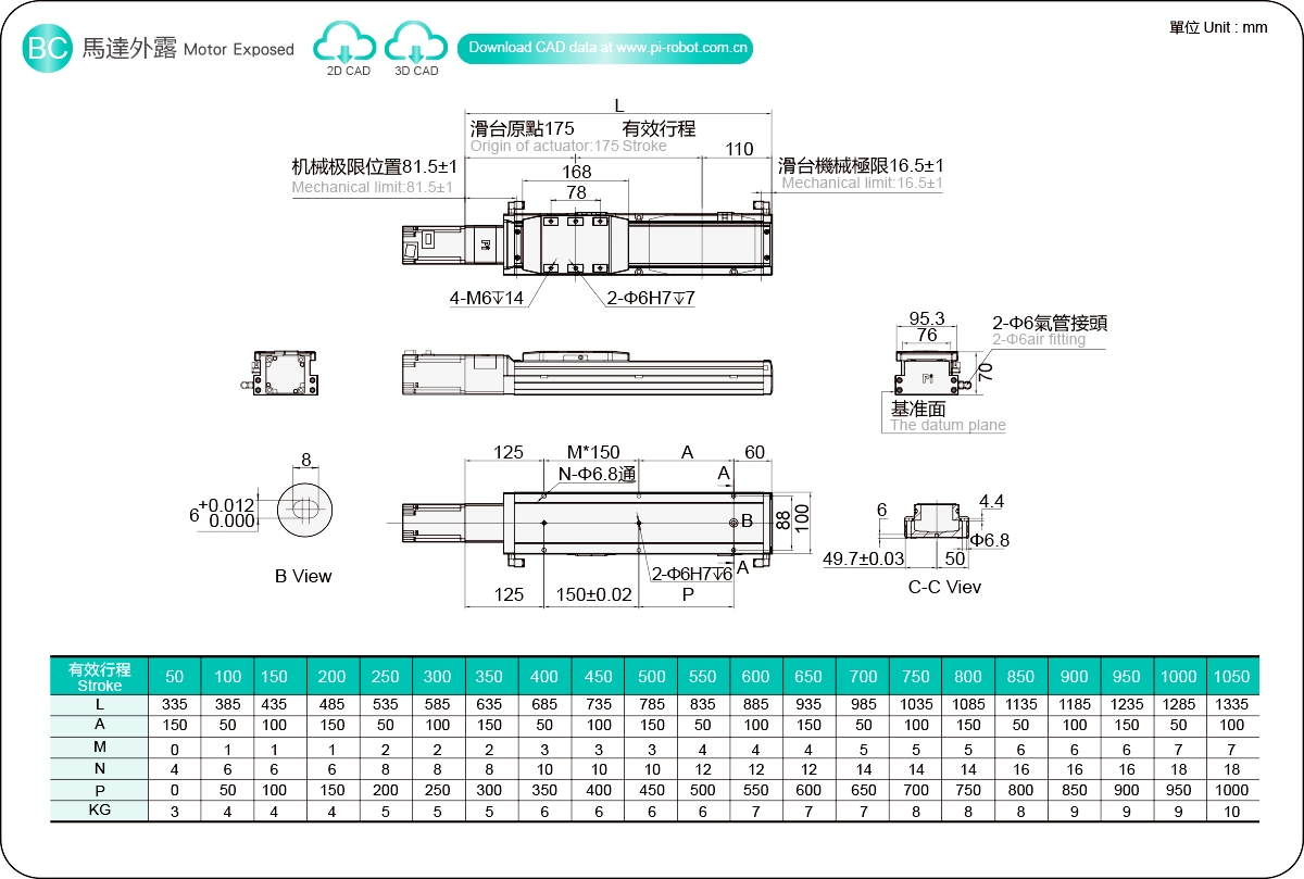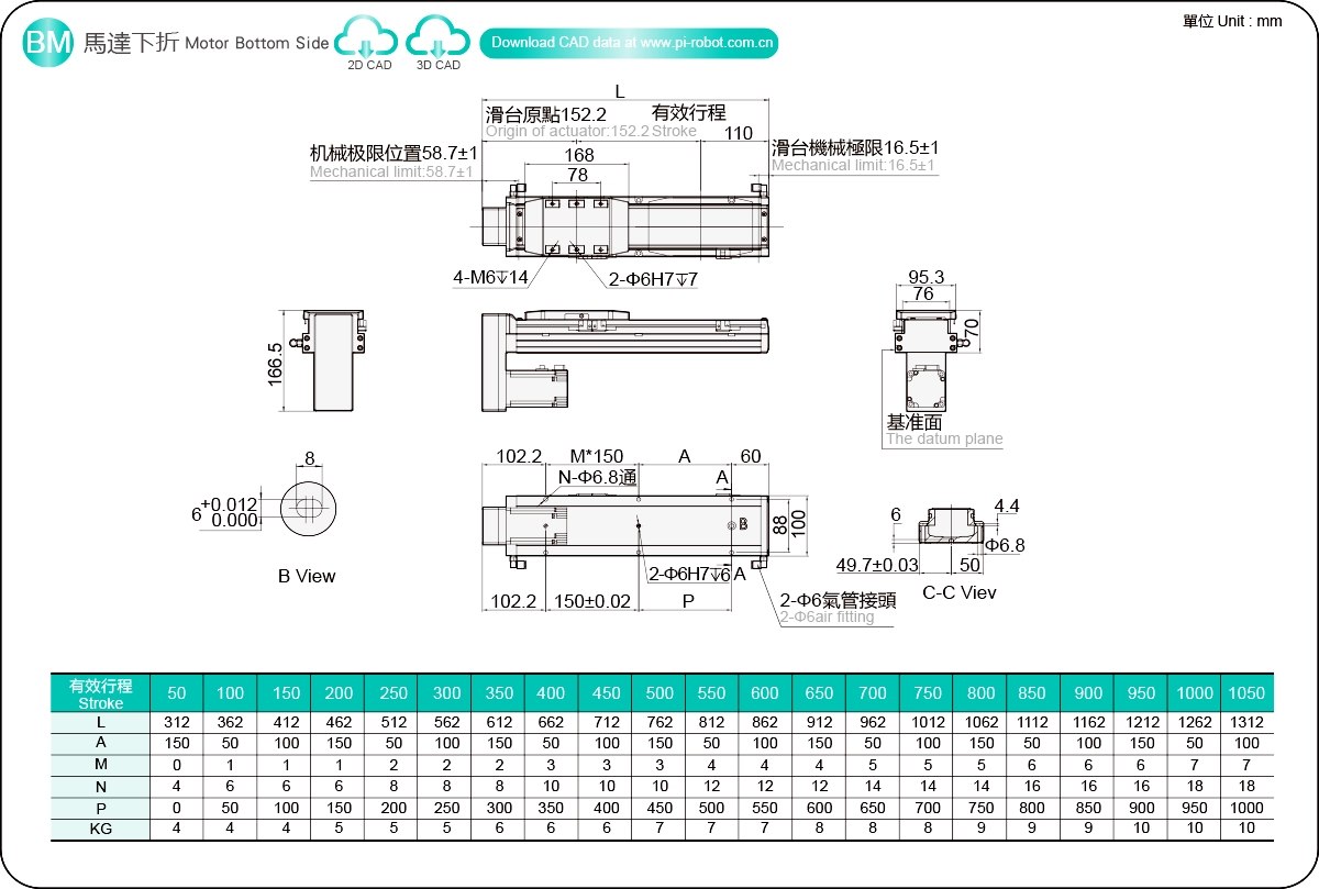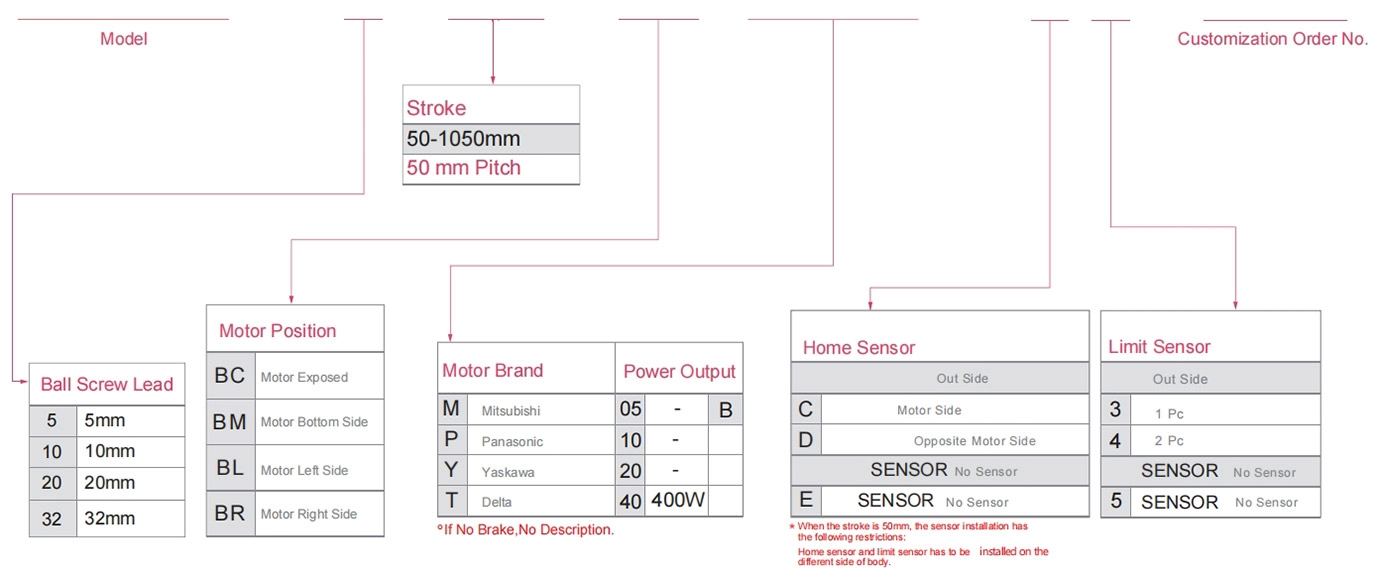 Stroke Pitch (mm)※250-1050mm/50mm Pitch