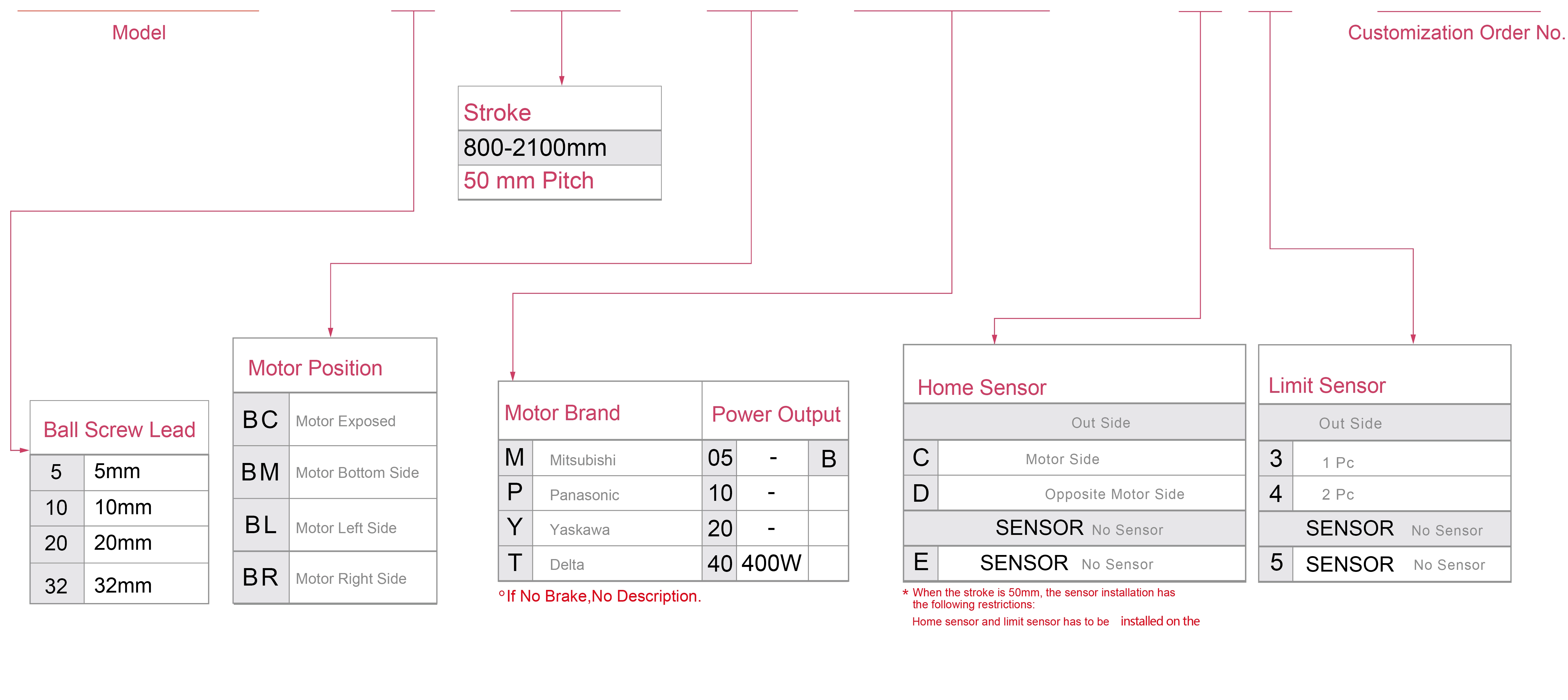 | Ball Screw Lead (mm) | 5 | 10 | 20 | 32 | ||