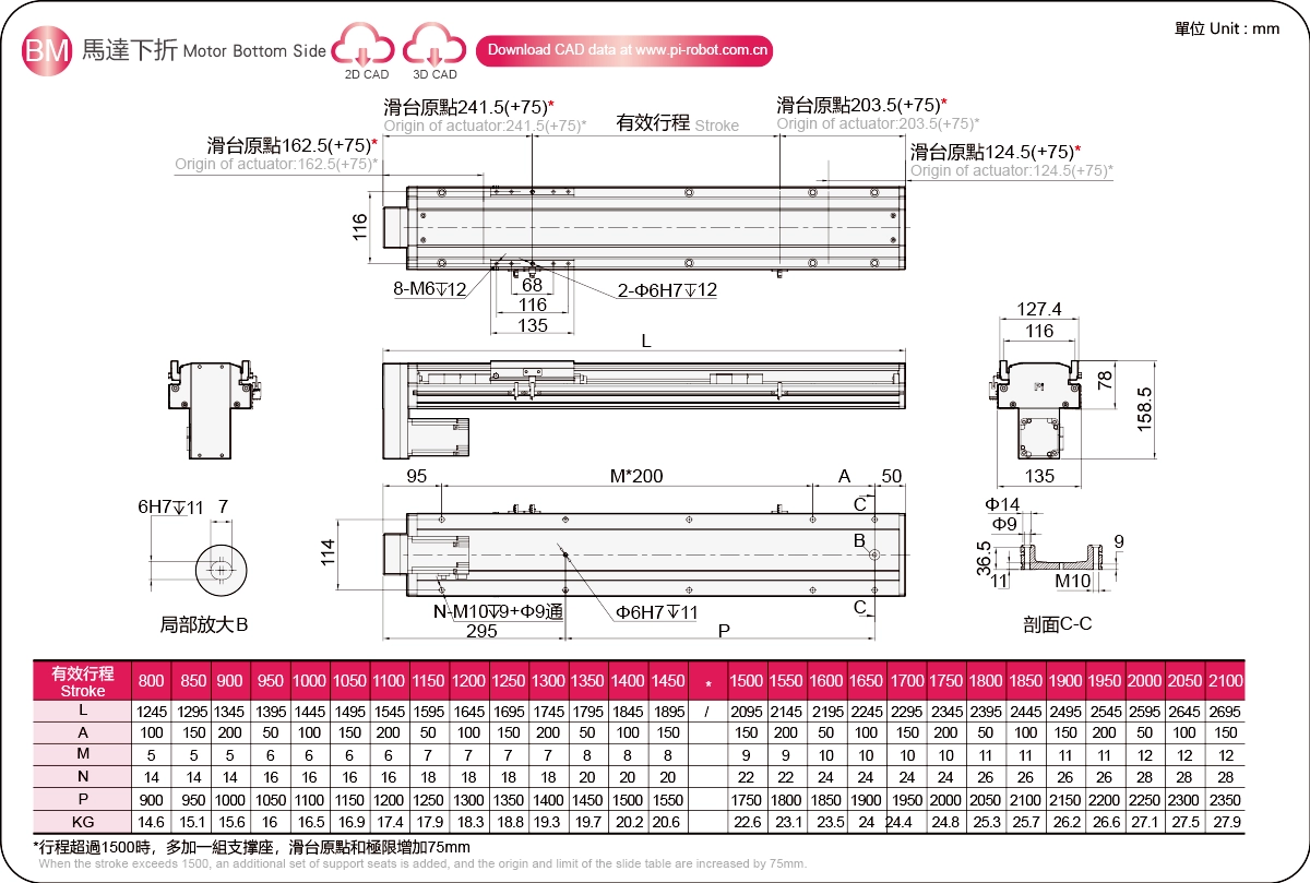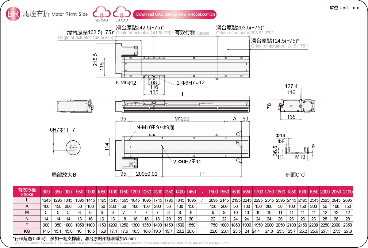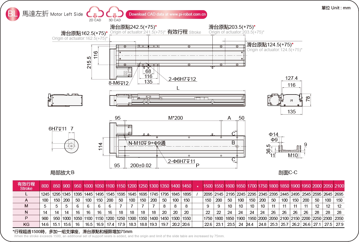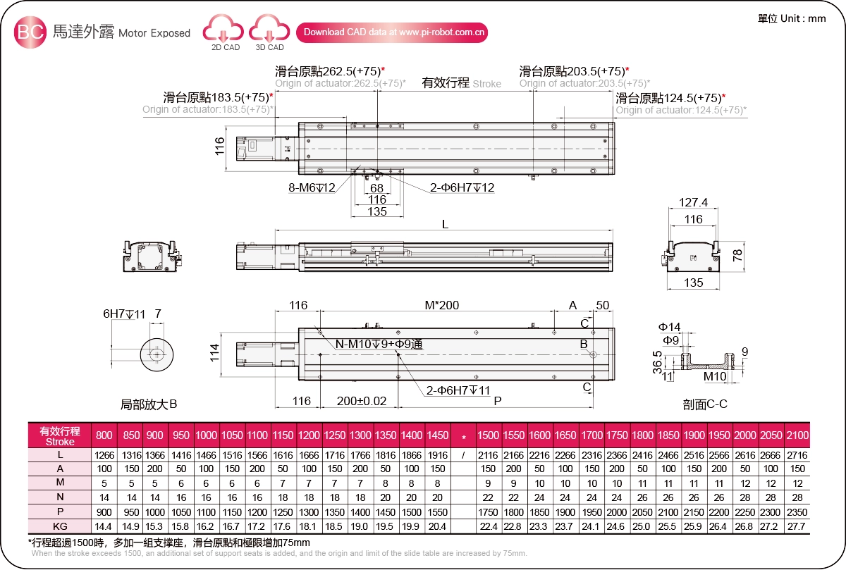 | Stroke Pitch (mm)※2 | 800-2100mm/50mm Pitch | |||||