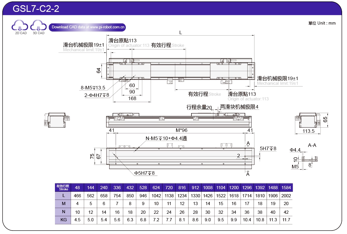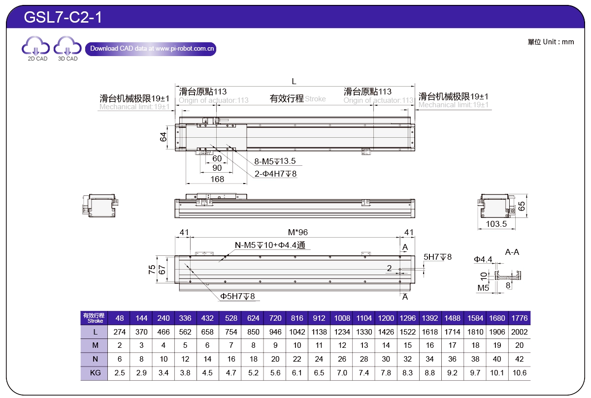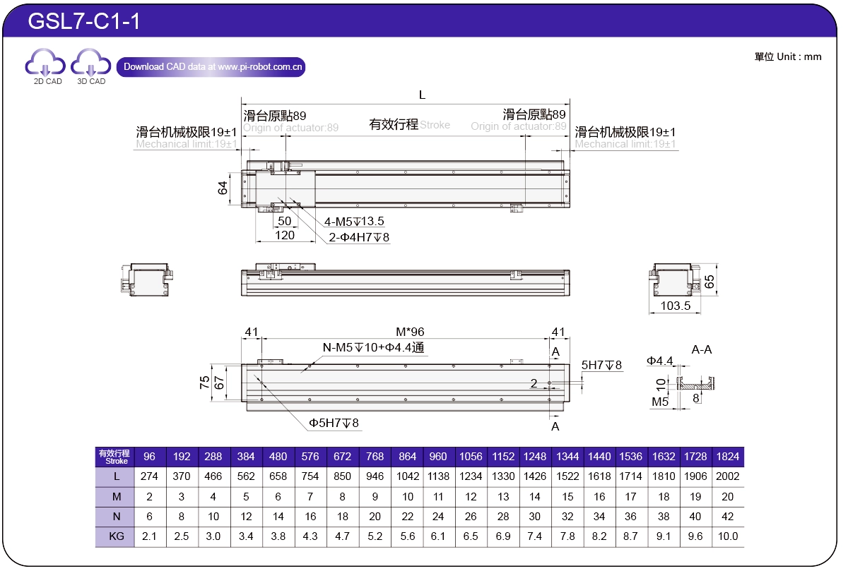StandardLinear Motor RobotGSL7P27-C17565±0.00326573.362500