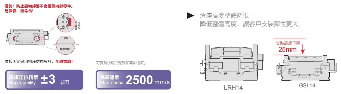 After embedding the sliding rail into the aluminum extrusion type, the parallel and equally high-precision tracks on both sides are ground by the grinding equipment, which will result in better accuracy than locking two standard line rails with the aluminum extrusion type.