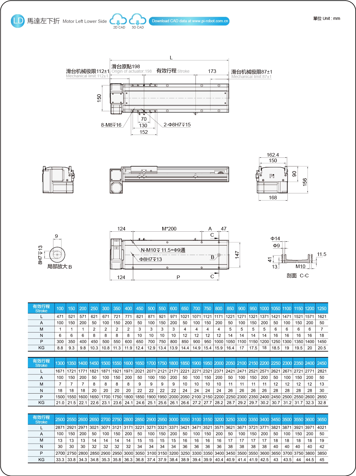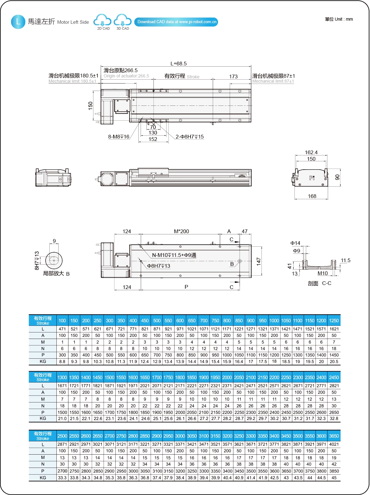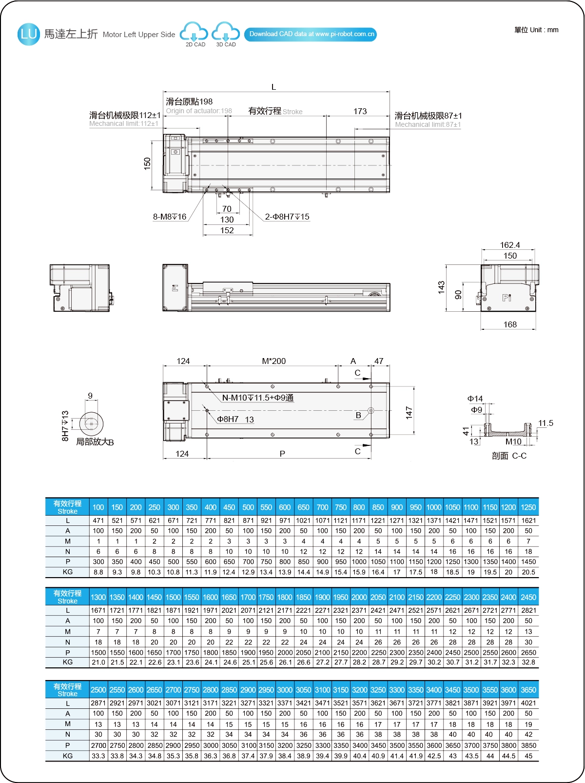 | Stroke Pitch (mm) | 100-3650mm/50mm Pitch | ||