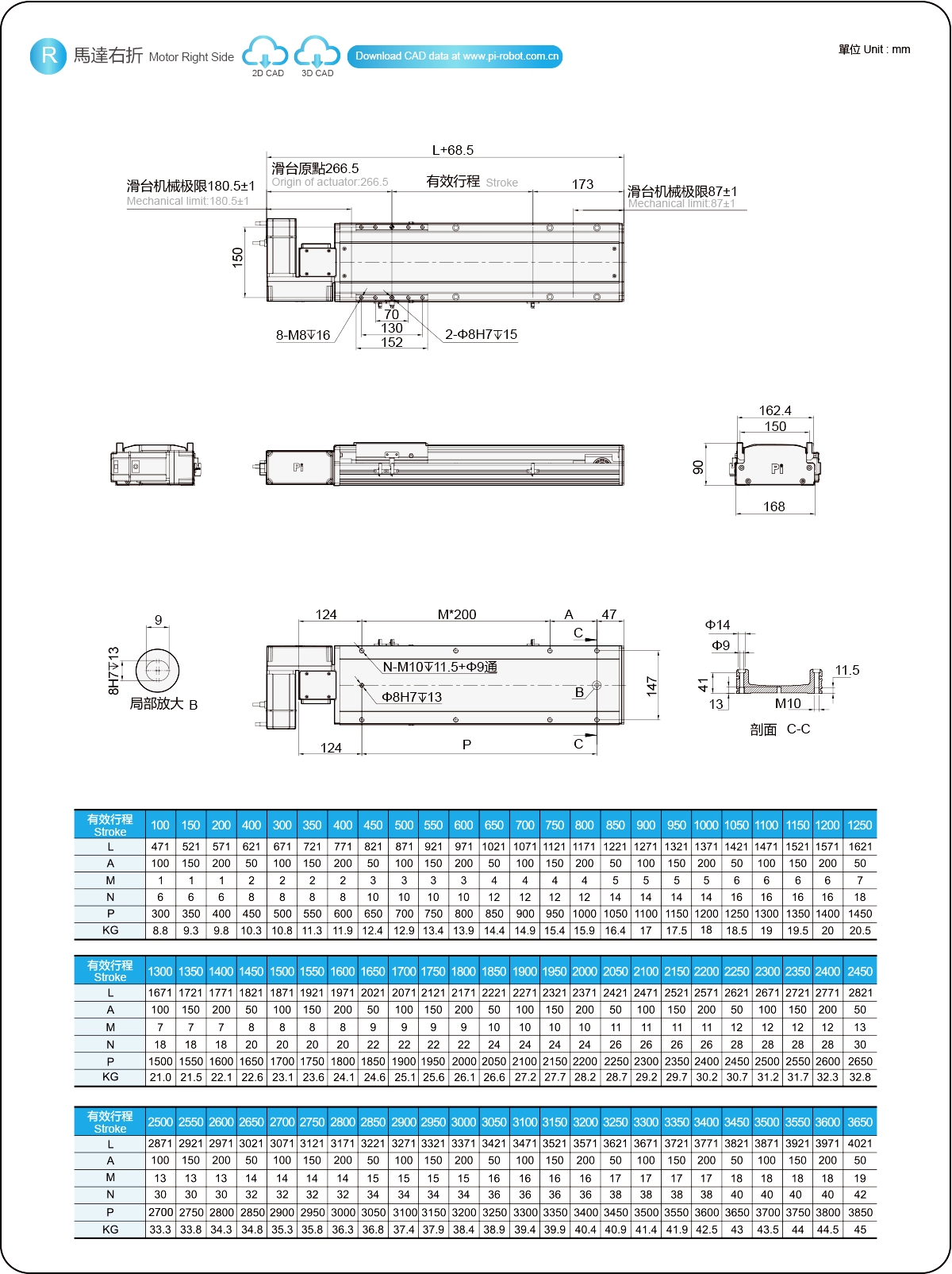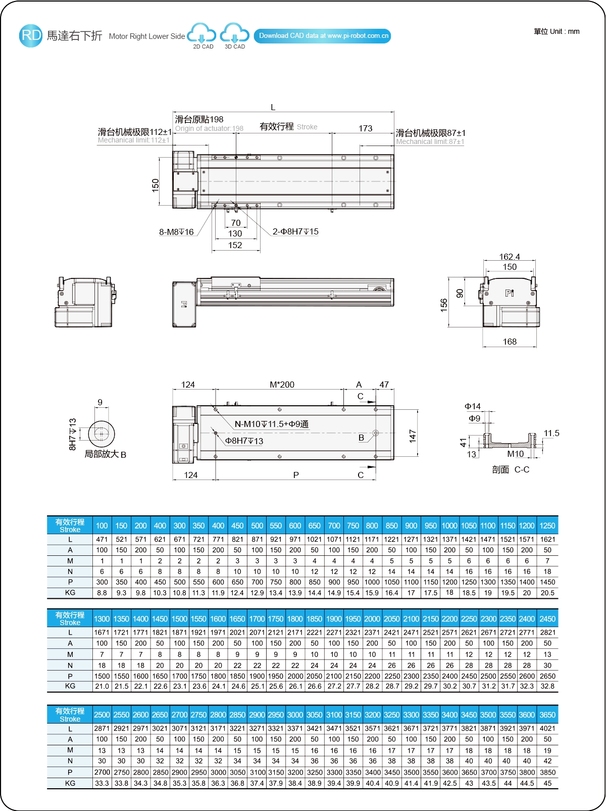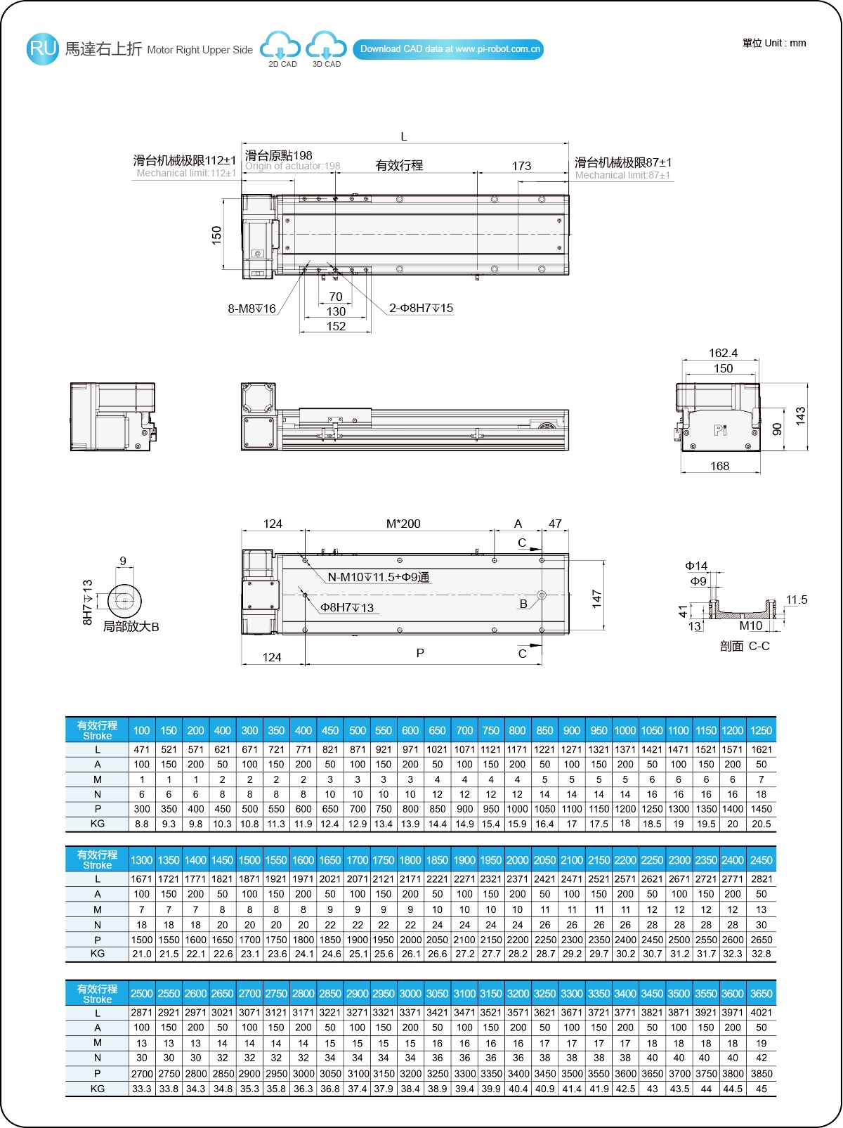 | Stroke Pitch (mm) | 100-3650mm/50mm Pitch | ||