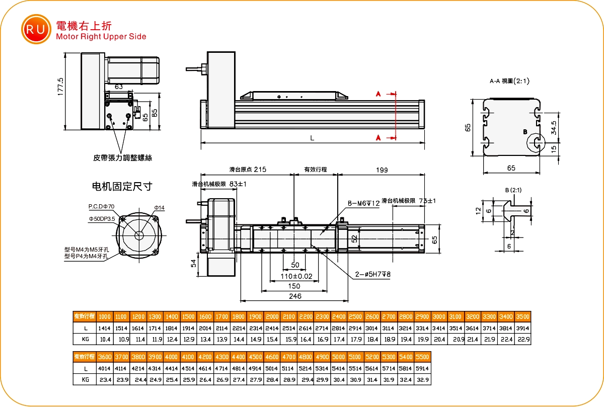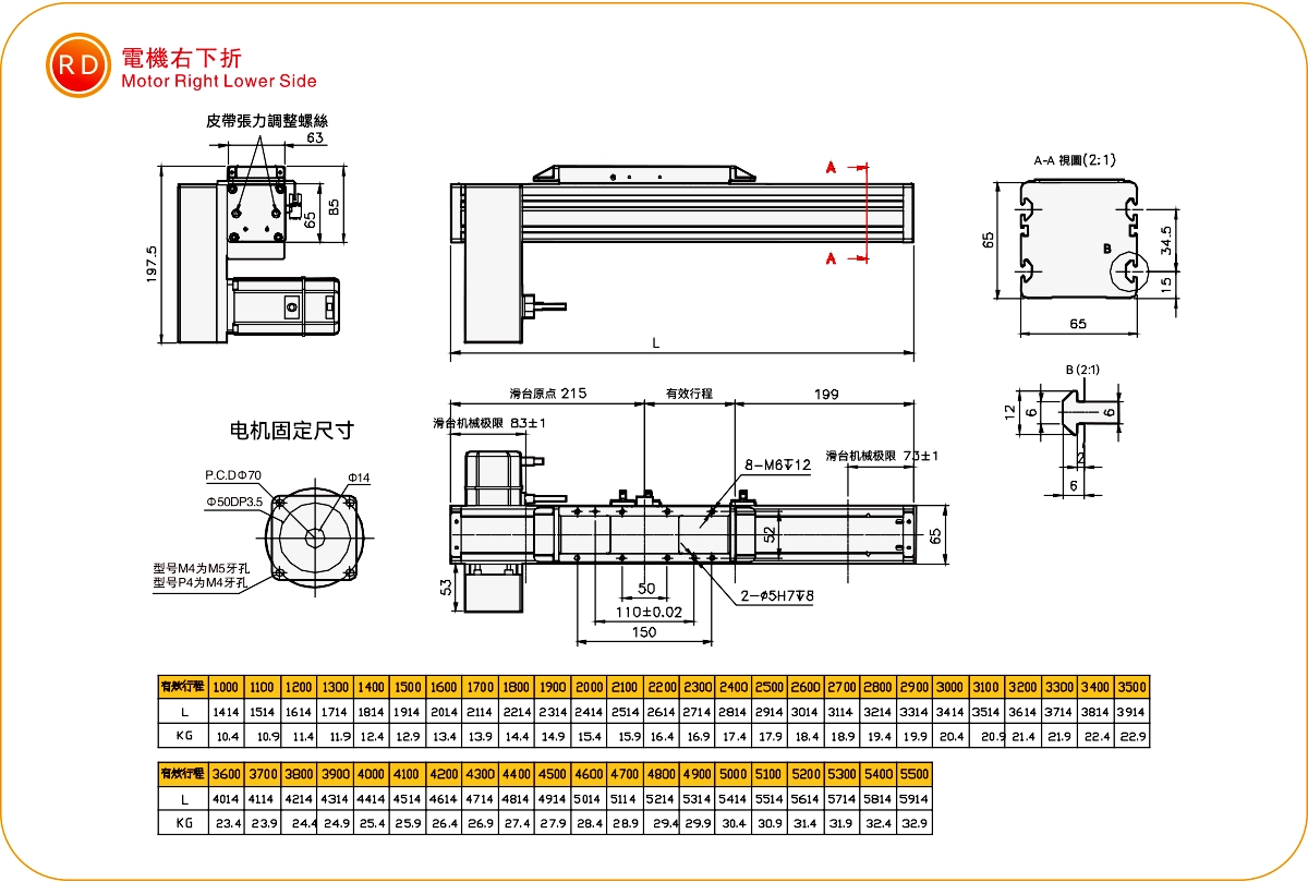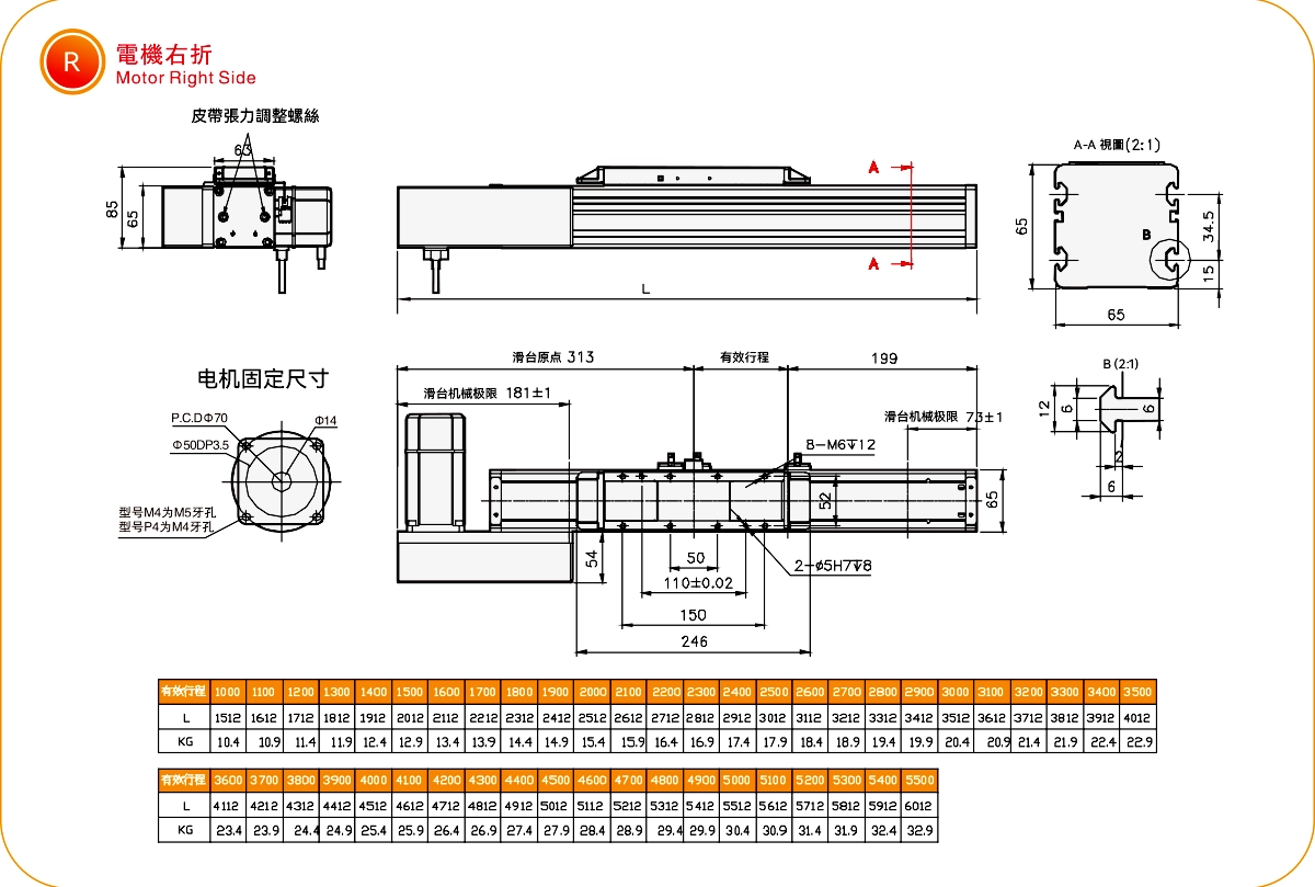Current location:Home > Product > Standard Belt Actuator > MKR Series > MKR65 > Motor Right Side