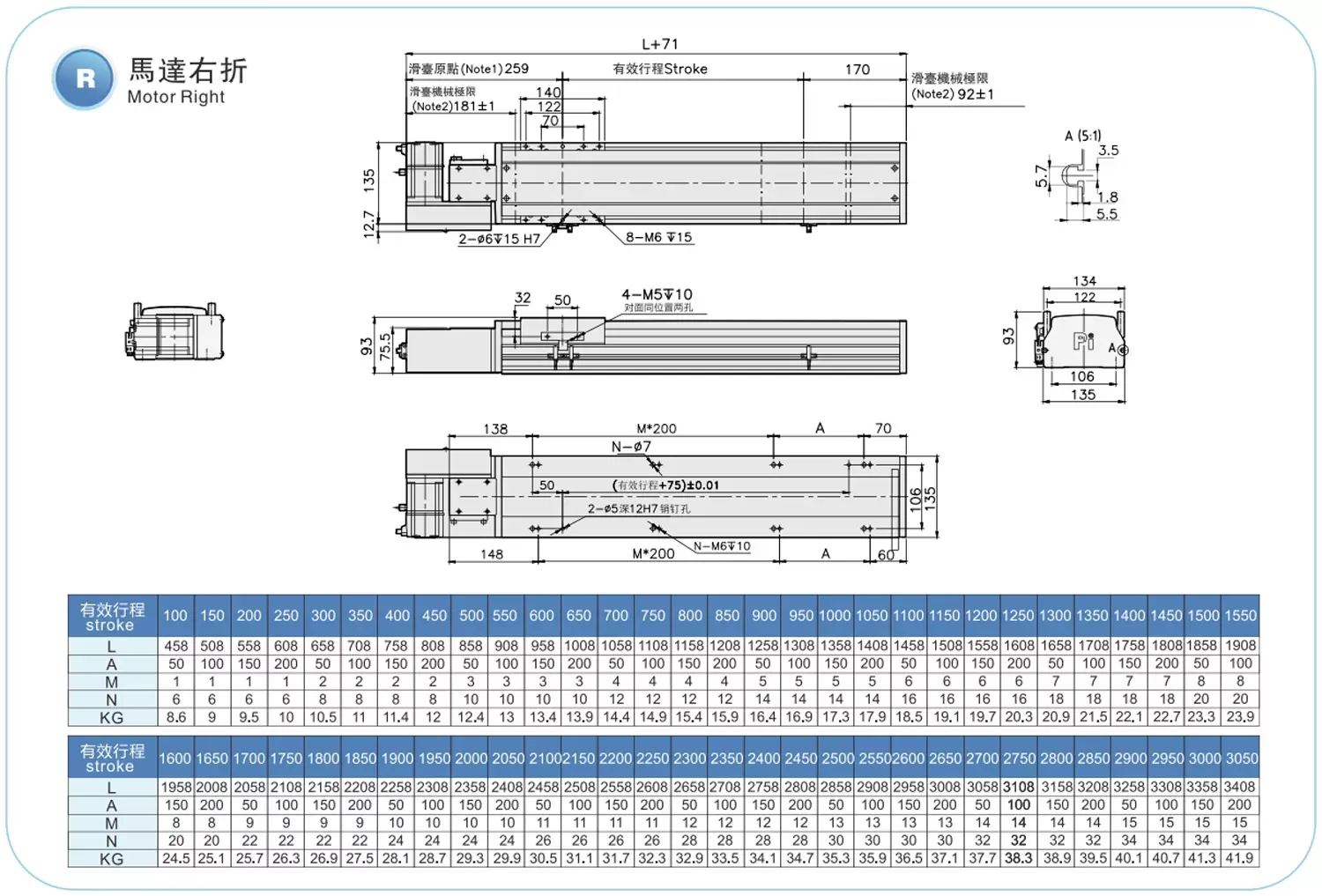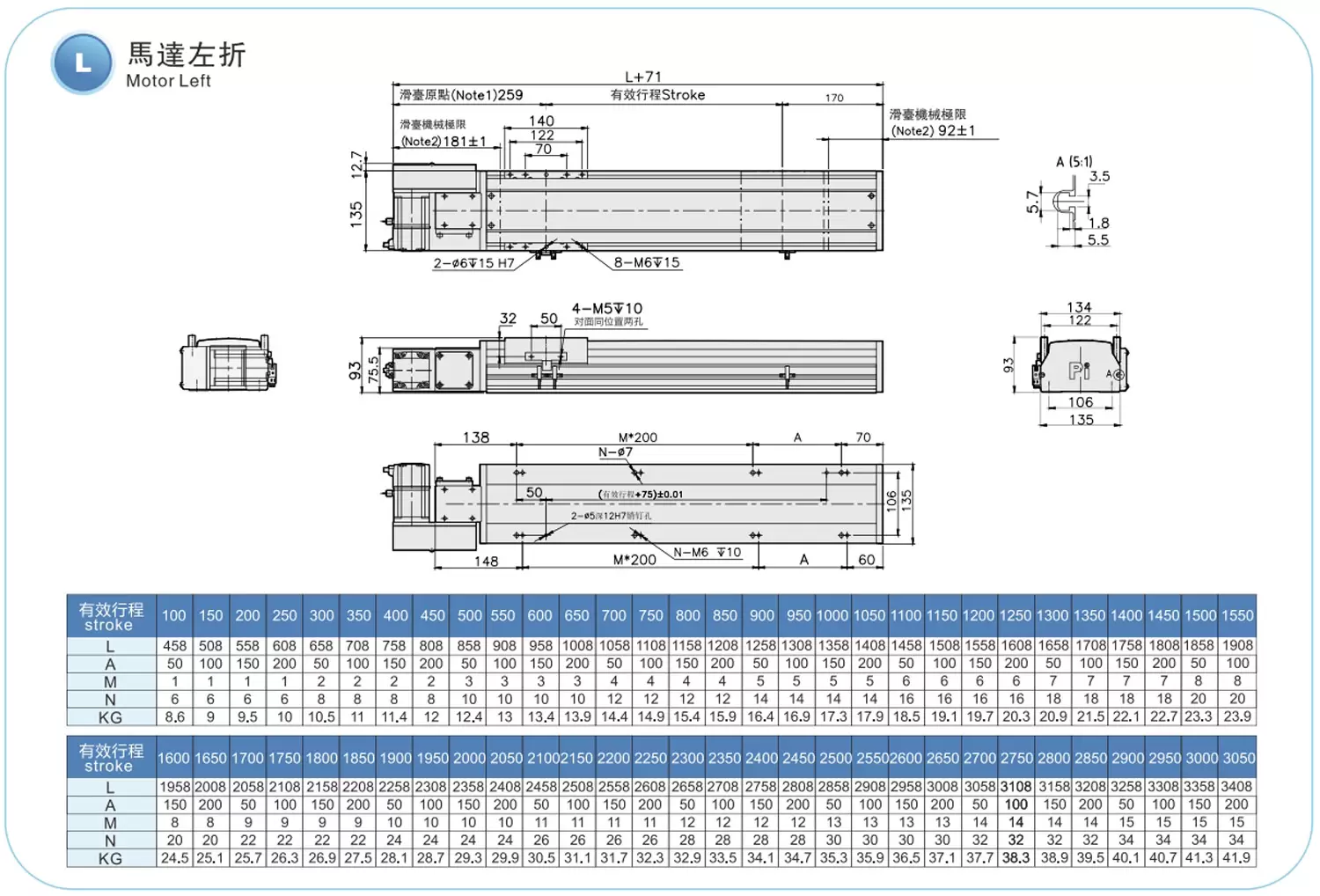 Stroke Pitch (mm)100-3050mm/50mm Pitch