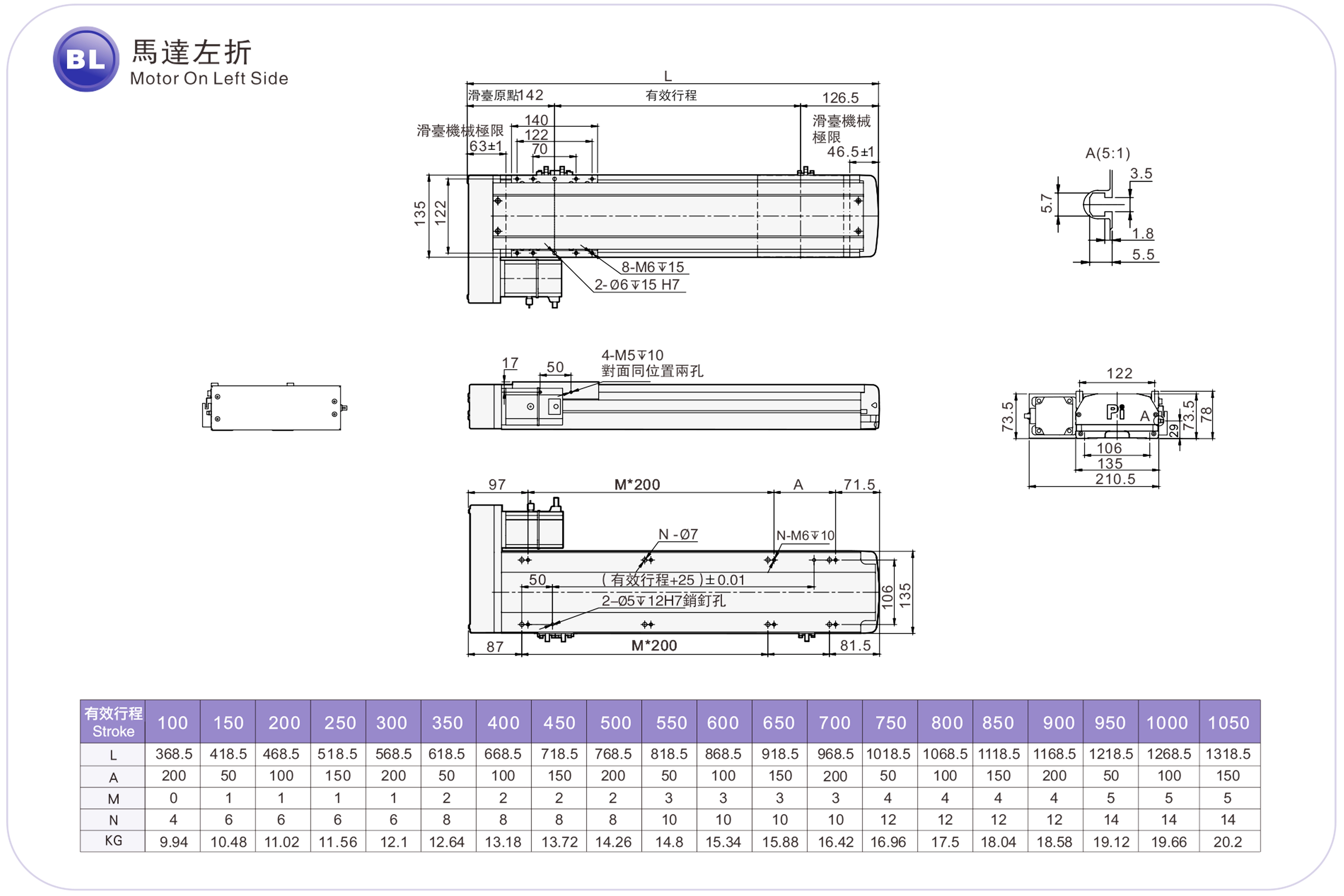 | Stroke Pitch (mm) | 100-1050mm/50mm Pitch | |||||