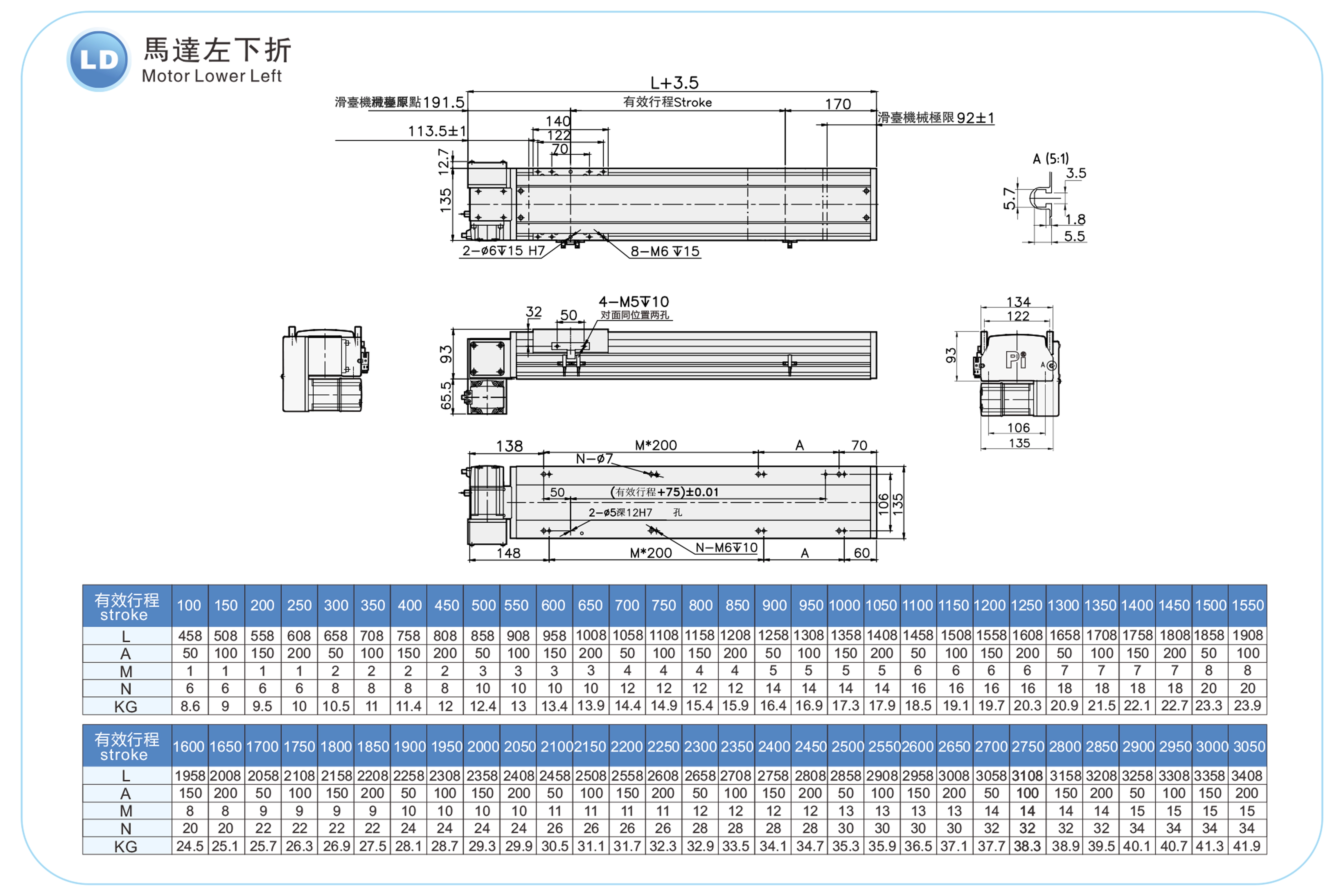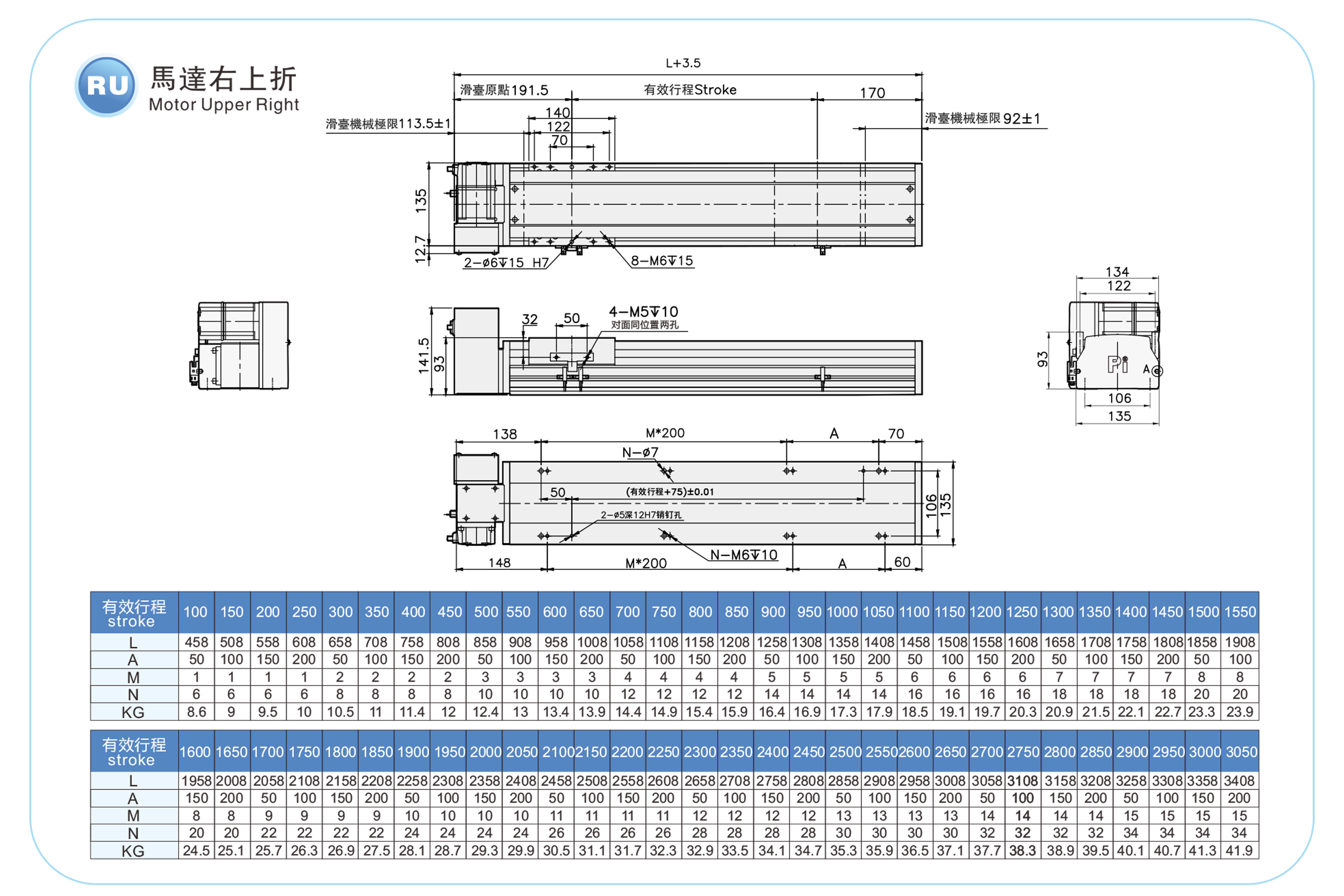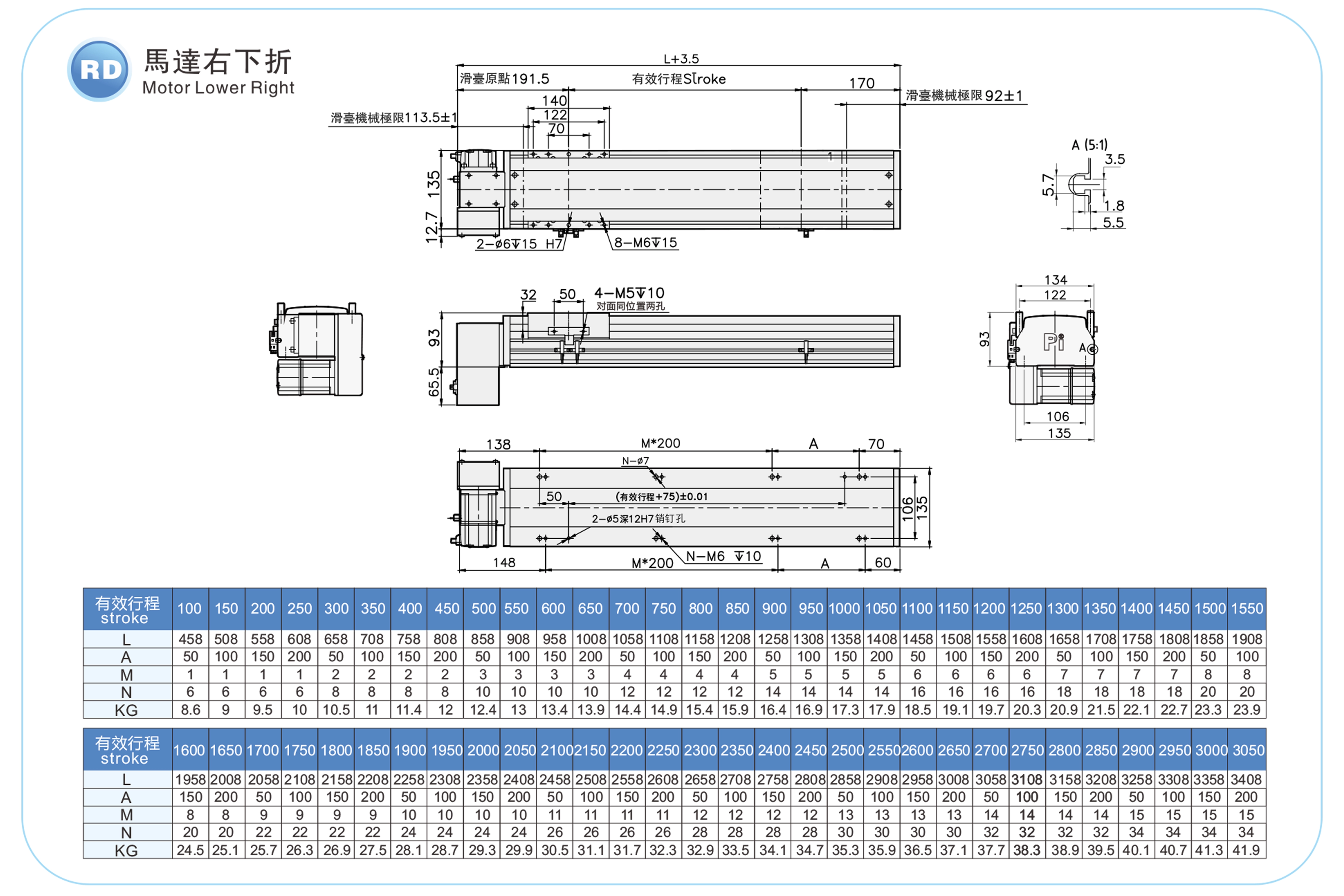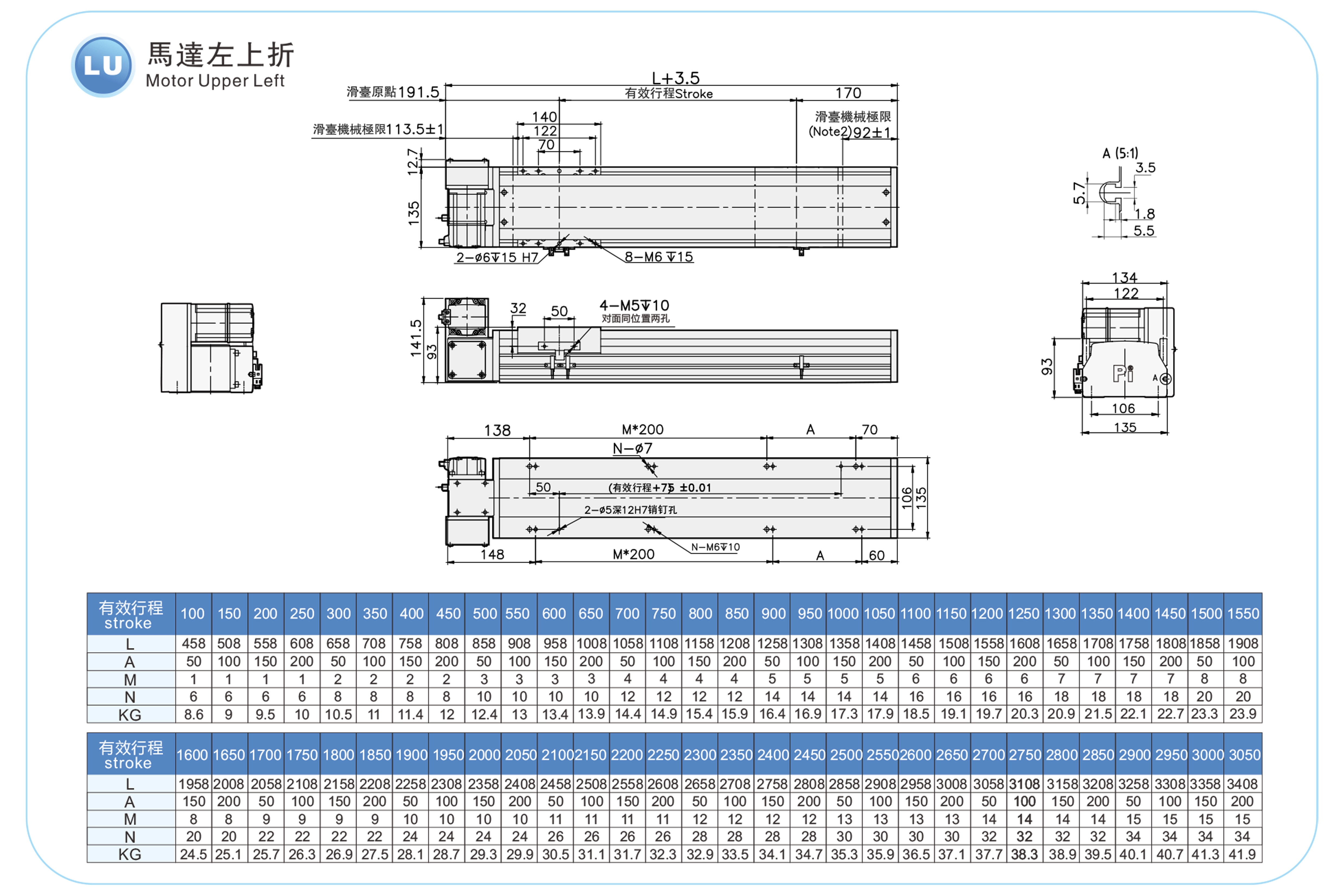 | Stroke Pitch (mm) | 100-3050mm/50mm Pitch | ||