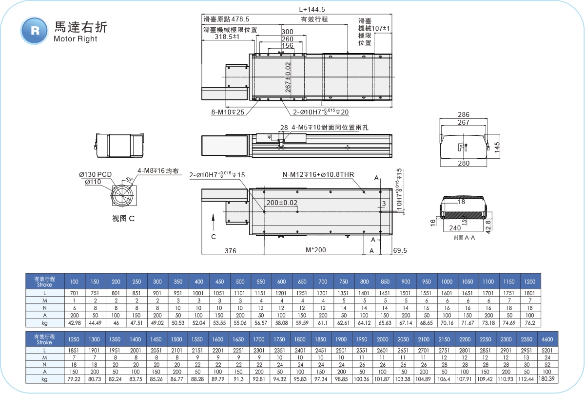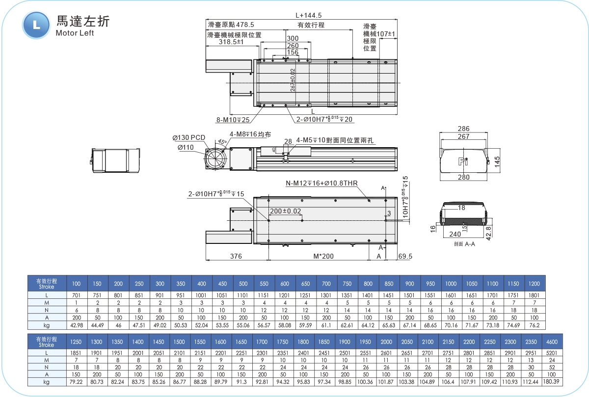 | Stroke Pitch (mm) | 100-4600mm/50mm Pitch | ||