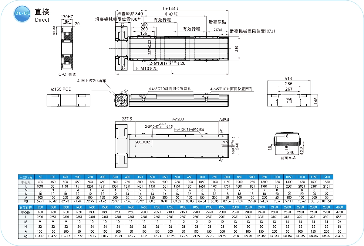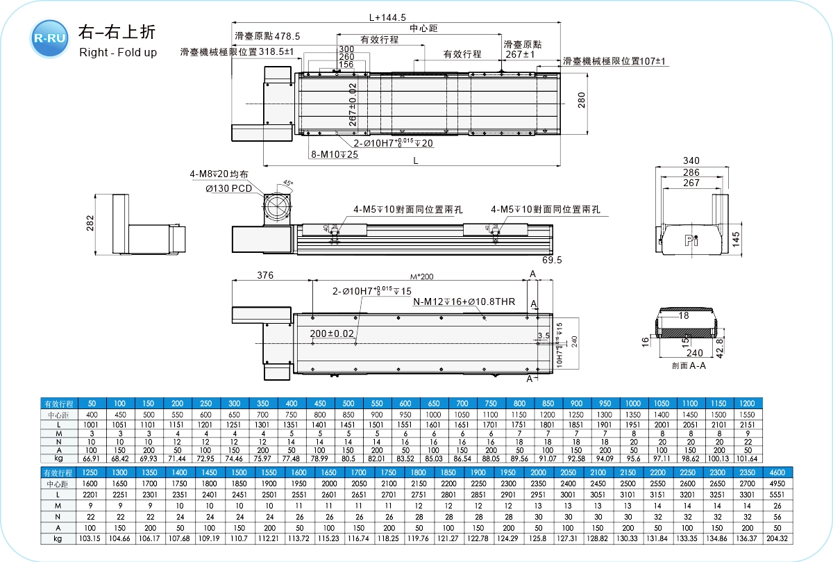 | Stroke Pitch (mm) | 50-6150mm/50mm Pitch | ||
