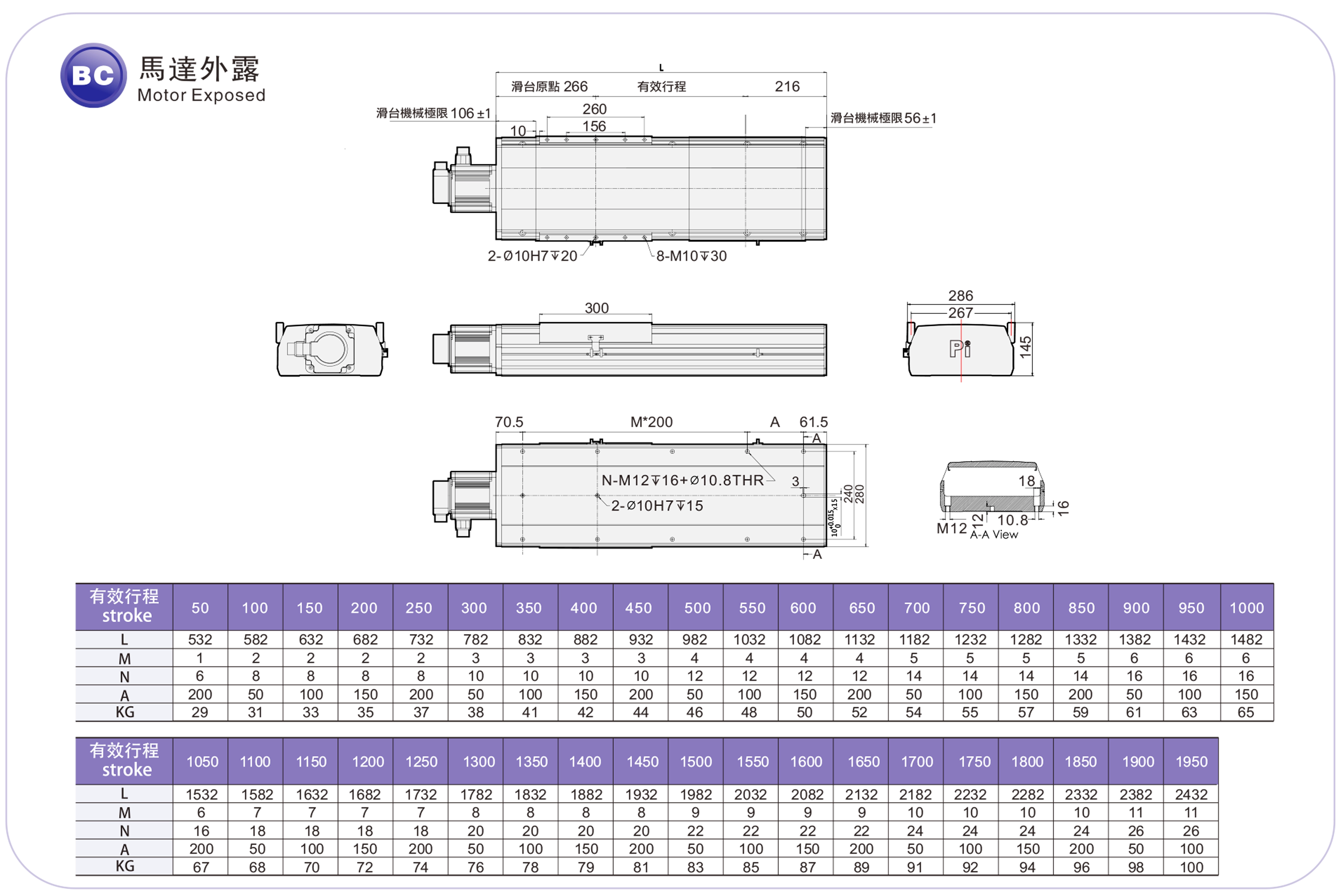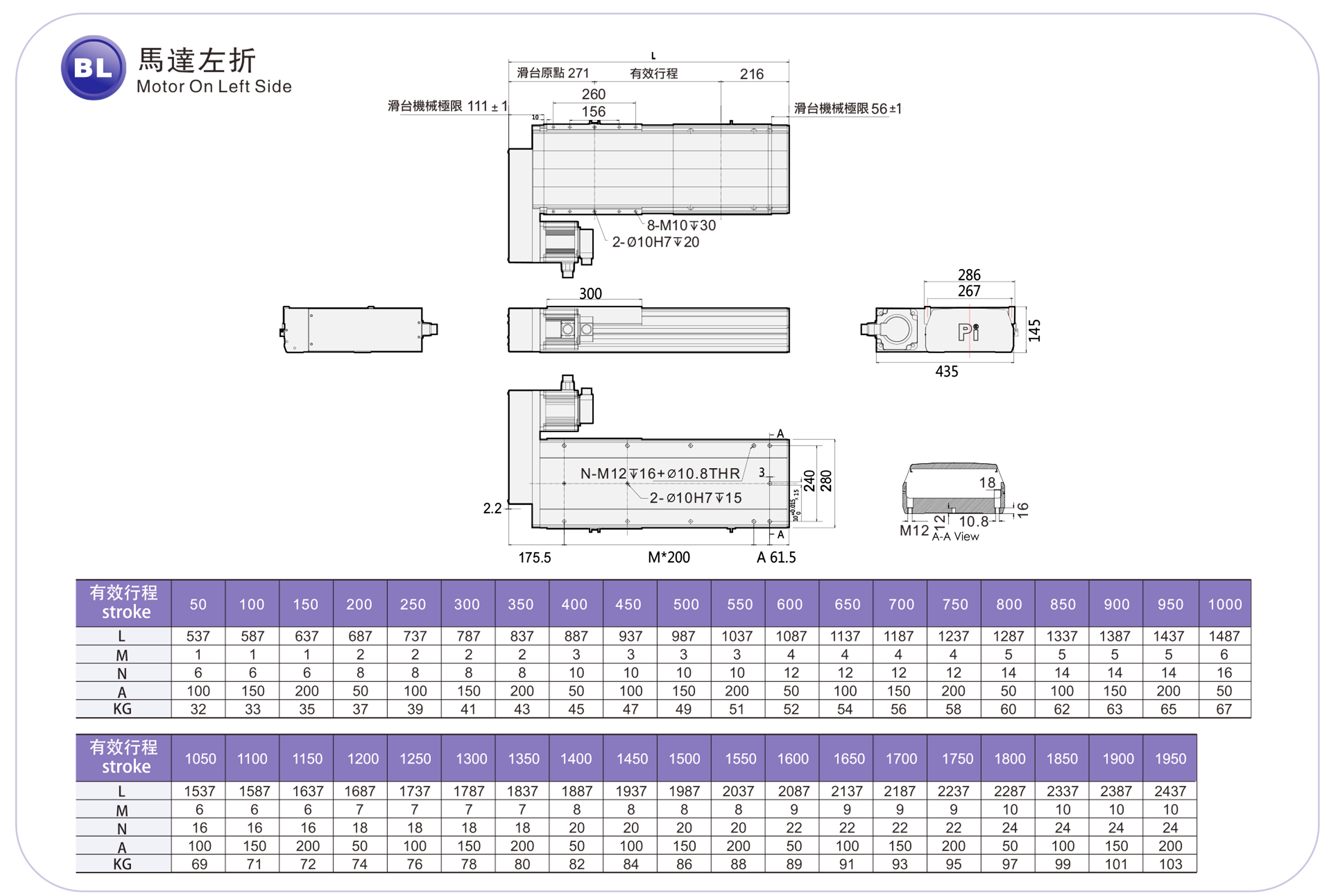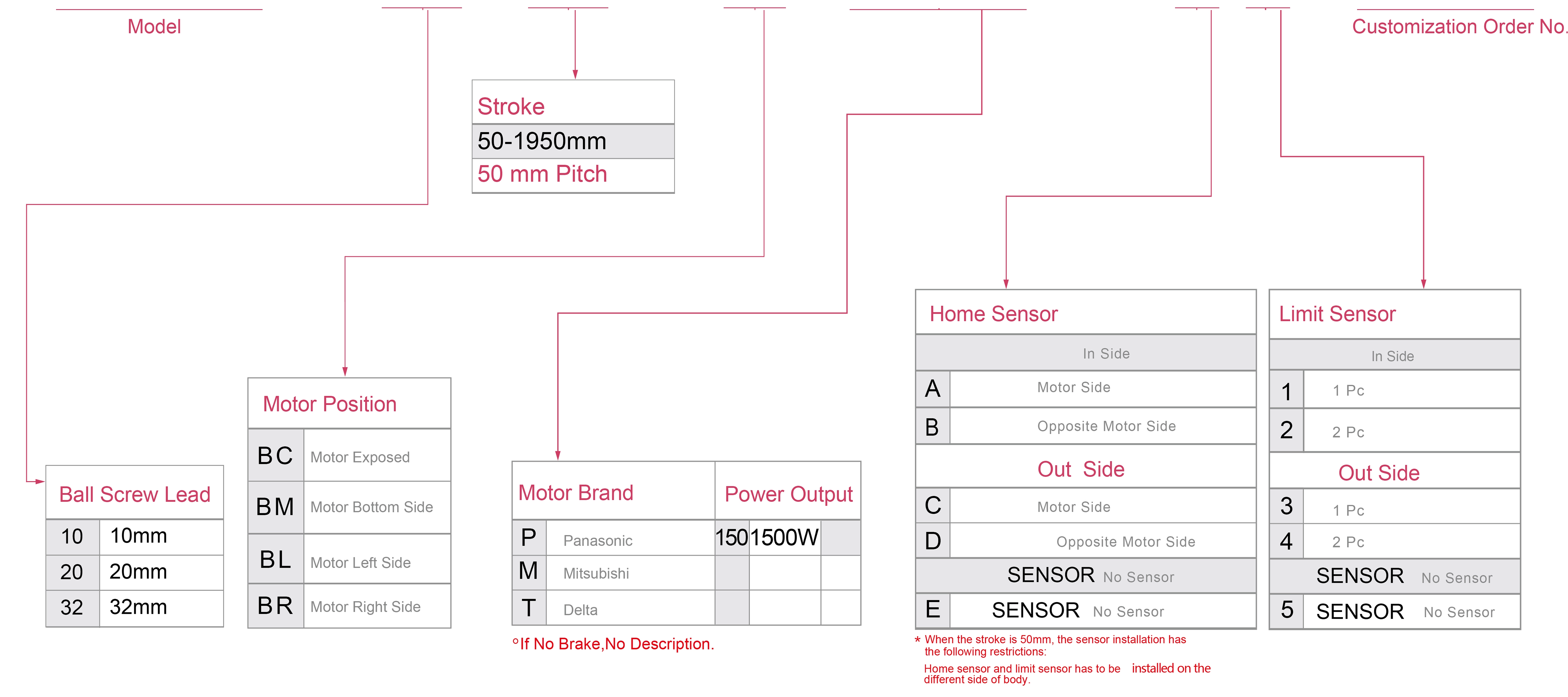 | Stroke Pitch (mm) | 100-1950mm/50mm Pitch | |||||