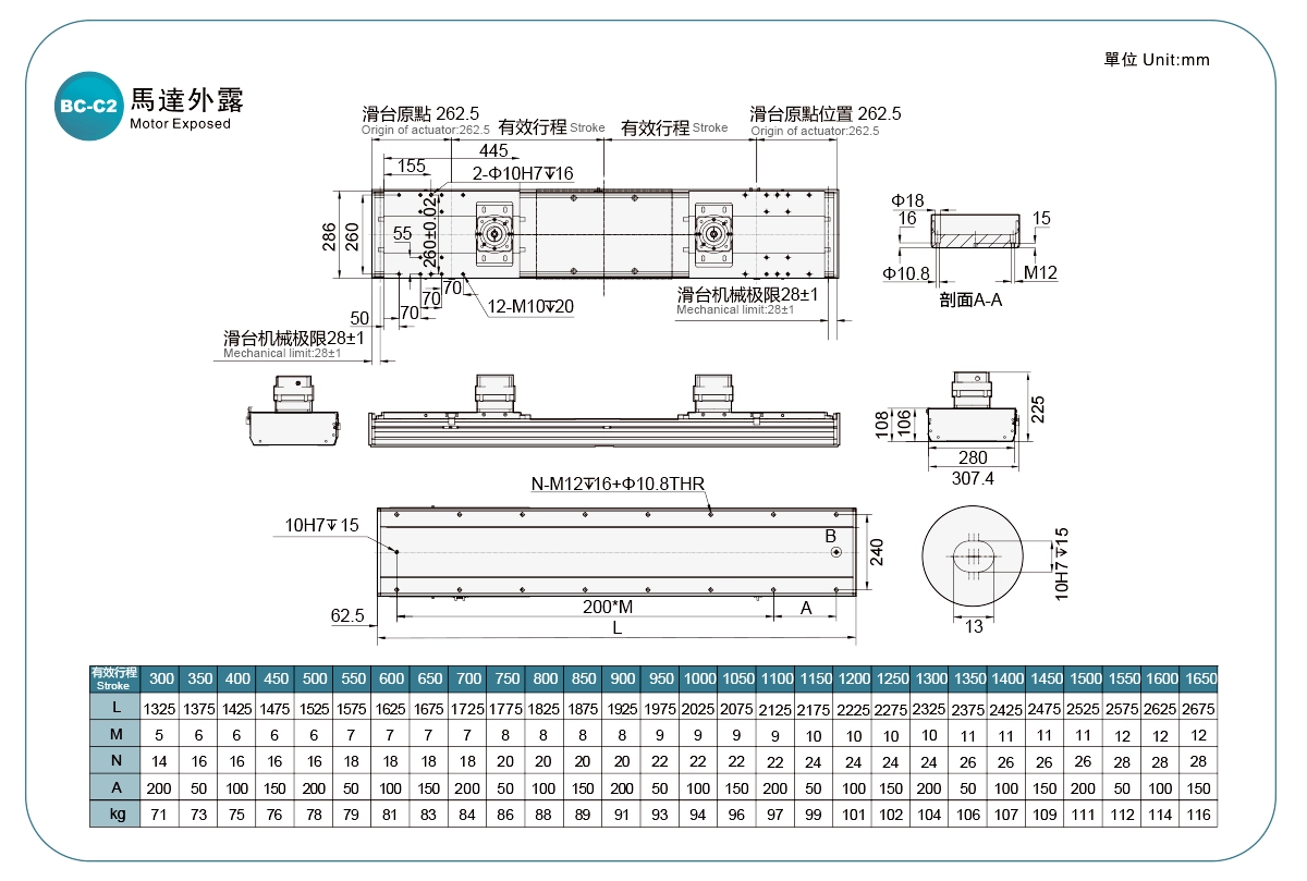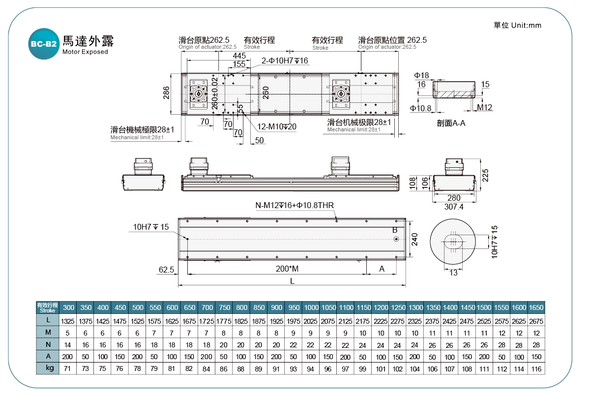 Stroke Pitch (mm)※2100-6300mm/50Pitch